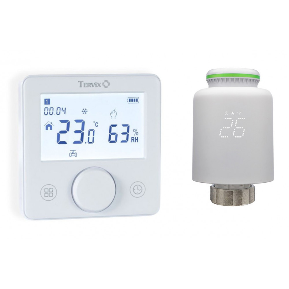 Безпровідний комплект Tervix Pro Line призначений для точного та енергоефективного керування радіаторною системою опалення. До складу комплекту входять кімнатний та , які працюють у парі, забезпечуючи автоматичне регулювання подачі теплоносія відповідно до температури в приміщенні. вимірює температуру повітря та формує керуючі команди, а виконує їх шляхом часткового відкриття або закриття клапана радіатора. Обмін даними між пристроями здійснюється через RF-зв’язок, що дозволяє реалізувати систему без прокладання проводів. Завдяки інтелектуальному PID-регулюванню, яке виконується на термостаті TZR, система швидко реагує на зміну температури та підтримує її з високою точністю, підвищуючи комфорт і знижуючи витрати на опалення. Ключові переваги повністю безпровідне керування системою опалення обмін даними між термостатом і приводом по RF-протоколу інтелектуальне PID-регулювання температури автоматичне та ручне керування програмування температурних режимів точне регулювання ступеня відкриття клапана радіатора індикація стану роботи та рівня заряду батарей можливість інтеграції в систему «розумного будинку» через ZigBee Зручність монтажу Усі пристрої комплекту мають безпровідне виконання та живляться від батарейок, що дозволяє встановлювати їх без складних монтажних робіт. Радіаторний привід монтується безпосередньо на клапан радіатора (різьба M30×1,5, у комплекті перехідники), а кімнатний термостат може бути розміщений у зручному місці для коректного вимірювання температури. Важливо ⚠️ Радіаторний привід VR Tervix Pro Line RF не має власного датчика температури та працює виключно разом із кімнатним термостатом TZR Tervix Pro Line. Вимірювання температури, PID-регулювання та налаштування режимів роботи виконуються на термостаті. ]]>