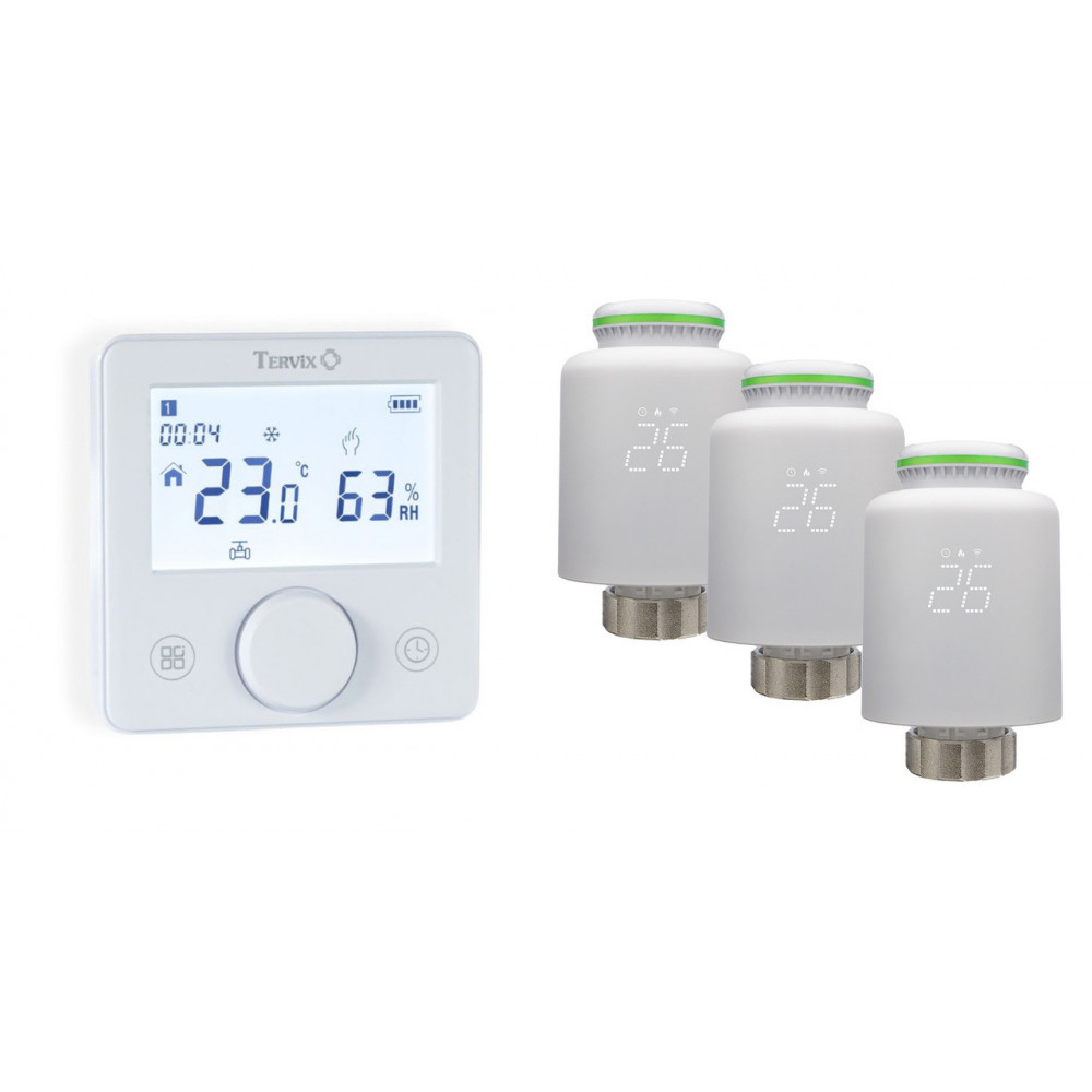 Безпровідний комплект Tervix Pro Line призначений для точного та енергоефективного керування радіаторною системою опалення. До складу комплекту входять та , які працюють у парі, забезпечуючи автоматичне регулювання подачі теплоносія відповідно до температури в приміщенні. вимірює температуру повітря та формує керуючі команди, а виконує їх шляхом часткового відкриття або закриття клапана радіатора. Обмін даними між пристроями здійснюється через RF-зв’язок, що дозволяє реалізувати систему без прокладання проводів. Завдяки інтелектуальному PID-регулюванню, яке виконується на термостаті TZR, система швидко реагує на зміну температури та підтримує її з високою точністю, підвищуючи комфорт і знижуючи витрати на опалення. Ключові переваги повністю безпровідне керування системою опалення обмін даними між термостатом і приводом по RF-протоколу інтелектуальне PID-регулювання температури автоматичне та ручне керування програмування температурних режимів точне регулювання ступеня відкриття клапана радіатора індикація стану роботи та рівня заряду батарей можливість інтеграції в систему «розумного будинку» через ZigBee Зручність монтажу Усі пристрої комплекту мають безпровідне виконання та живляться від батарейок, що дозволяє встановлювати їх без складних монтажних робіт. Радіаторний привід монтується безпосередньо на клапан радіатора (різьба M30×1,5, у комплекті перехідники), а кімнатний термостат може бути розміщений у зручному місці для коректного вимірювання температури. Важливо ⚠️ Радіаторний привід VR Tervix Pro Line RF не має власного датчика температури та працює виключно разом із кімнатним термостатом TZR Tervix Pro Line. Вимірювання температури, PID-регулювання та налаштування режимів роботи виконуються на термостаті. ]]>