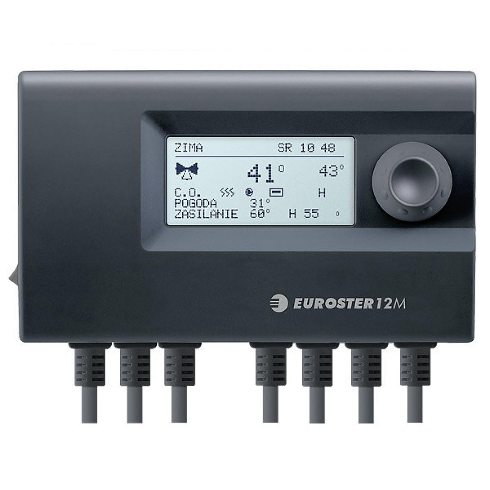 Euroster 12М – це універсальний погодозалежний контролер, що призначений для керування електроприводом триходового клапана і циркуляційним насосом. Всі параметри відображаються на графічному дисплеї, де їх легко налаштувати за допомогою воротка з кнопкою. Функціональні можливості: • керування приводом триходового клапана; • керування циркуляційним насосом; • погодозалежне коригування заданої температури контуру Ц.О.; • встановлення режиму роботи по днях тижня і годинах; • можливість підключення кімнатного термостата; • автоматичне вимикання обігріву при зростанні температури на зворотній лінії; • можливість погодинного включення циркуляції із заданою температурою; • захист від перегріву або переохолодження контуру Ц.О.; • сигналізація тривожних значень; • можливість задати режим роботи по сезону, зима/літо; • система АНТИ-СТОП – захист від залипання ротора насоса; • повний комплект необхідних датчиків. ]]>