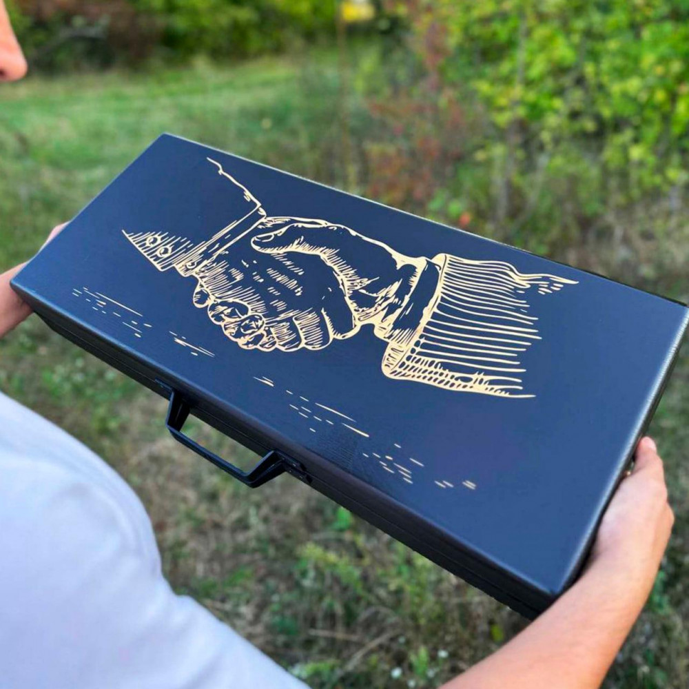 Набір шампурів у дерев'яній коробці "БАДЬОРИЙ" з гравіюваннямПодарунковий набір для гриля — це комплект для пікніка та відпочинку на природі, де є всі необхідні столові прилади на 6 персон. Прилади та шампури продаються в естетичному дерев'яному кейсі, у ньому зручно зберігати та транспортувати набір. Що входить до подарункового набору для барбекю У комплекті для пікніка та барбекю від Shop-Pan є прилади для сервірування столу та приготування шашлику. До набору входять: 6 виделок; 6 ножів; 6 тарілок; 6 чарок; виделка для м'яса; 6 звичайних шампурів; дерев'яний кейс для зберігання і транспортування виробів. Розмір дерев'яного кейса: 69х29х11.5 см. Кейс із металевою ручкою. Розмір шампури: довжина — 63 см; ширина – 1,5 см; товщина — 3 мм. Шампури універсальні, підходять для приготування шашлику, а також морепродуктів і овочів на мангалі будь-якого типу. Різниця відтінків кольорів фарб із різних партій може відрізнятися й містити неточності. Виробник залишає за собою право змінювати технічні характеристики виробу. ???? Shop-Pan – ваш прямий постачальник туристичного спорядження та ексклюзивних аксесуарів для дому та відпочинку Пропонуємо широкий асортимент товарів для туризму, кемпінгу, риболовлі та пікніків – якісні вироби, перевірені часом та зібрані з любов'ю до деталей. ???? Широкий асортимент продукції У нашому каталозі представлені: ✅ Туристичні сковороди, турбо-пічки, котли, коптильні, ножі, рибальські сумки, ліхтарі та багато іншого ✅ Надійні товари для активного відпочинку, будинки та кухні – все для зручності та натхнення. ✅ Рішення для будь-якого стилю життя - від походів до домашнього затишку ✅ Збалансований вибір: еко-продукція з дерева, кухонні гравівальні дошки, фартухи з вашим принтом, монастирі, мангали, шампури, годинники та постери ✅ Аксесуари з можливістю персоналізації – зробіть свій подарунок унікальним ✅ Якість, естетика та турбота в кожному виробі – без прихованих недоліків та компромісів ???? Професійні консультації Менеджери проконсультують щодо вибору товарів. Працюємо: Пн-Пт 10:00 – 18:00, Сб 11:00 – 16:00. Зв'язок: Viber, Telegram, WhatsApp. ???? Швидка доставка по Україні ???? Замовлення, оформлені до 16:00, надсилаються того ж дня. ???? Доставка найпопулярнішими службами України ???? Бонуси та знижки за відгуки! ???? ???? Оцініть якість товару та ГАРАНТОВАНО отримайте знижку або безкоштовну доставку на замовлення! ???? Нам особливо цінні фото- та відеовідгуки. ???? Повідомте про свій відгук менеджеру в Telegram, WhatsApp або Viber (на вибір) - і гарантовано отримайте приємний бонус! ???? Знайдіть нас у Google - "Shop-Pan" і ознайомтеся зі _______________________________ Чому обирають нас? ???? ✅ Якість, якій можна довіряти Практичні товари для дому, подорожей та активного відпочинку ✅ Зважений підхід, чесність та контроль якості на кожному етапі виготовлення ???? Від ексклюзивних сувенірів до туристичного спорядження – все для ваших цілей та подарунків ✅ Замовлення 24/7 - просто та швидко! ???? Наш сайт працює 24/7 ???? Менеджер відповість у месенджерах у зручний для вас час. ✅ Швидка доставка по Україні ???? Працюємо по всій Україні! ???? Розрахуємо вартість та підберемо зручний спосіб оплати. Отримайте посилку швидко та без клопоту. _______________________________ Як замовити? Простий алгоритм покупки: ✔ Оформіть замовлення через кошик або у месенджерах ✔ Ми зв'яжемося з вами для уточнення деталей ✔ Відправимо після о