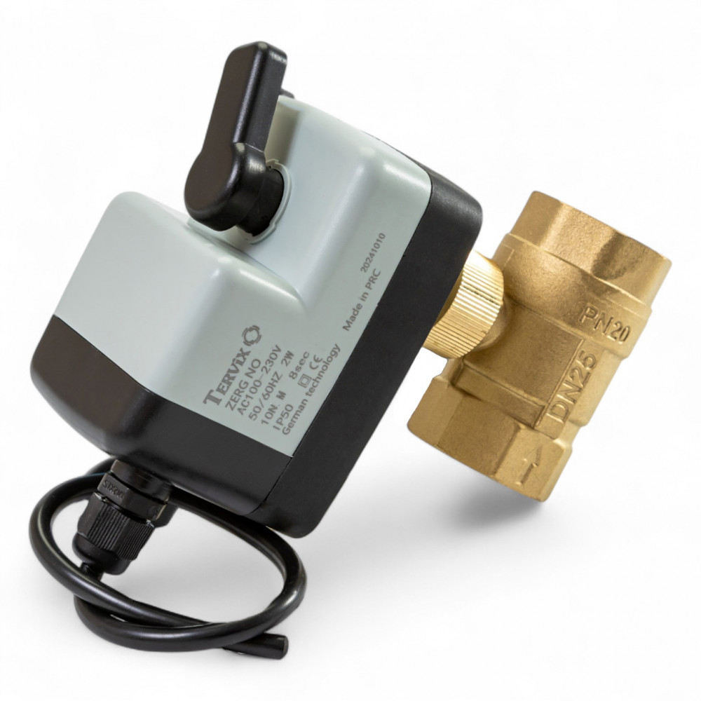 205112 2-ходовий кульовий клапан н/з 1/2" DN15 з самозворотним електроприводом Tervix Pro Line ZERG Принцип - on/off. Клапан з приводом має 2-х точкове управління (N+L, 230В).При першому підключенні (конденсатор розряджений) клапан має положення «відкритий». При першій подачі напруги на привід клапан залишається у положенні «відкрито», при знятті напруги з приводу (заряджений конденсатор) - у положення «закрито», при повторній подачі напруги - клапан знову переводиться у положення «відкрито». Крайнє положення ручки, за годинниковою стрілкою, визначає положення як «відкрито». Привід оснащений потужним конденсатором, що забезпечує його повернення у початкове положення при зняття напруги з приводу. Кульові клапани ZERG призначені для встановлення в cистеми опалення, вентиляції та кондиціонування (HVAC), фанкойли, системи автоматичного управління водопостачанням, системи нагріву води та ін. в якості запірних елементів. Експлуатація: Кульові клапани ZERG складаються з двох основних елементів - клапана і електричного приводу. Клапани ZERG дозволяється встановлювати без електричного приводу. Після монтажу клапана привід можна встановити в будь-який час. Під час експлуатації привід може бути замінений без необхідності зливу теплоносія або зупинки системи. В разі збою живлення клапан повертаєтся у положення «закритий». У випадку необхідності відкрити клапан вручну при відсутності електроенергії, потрібно натиснути на ручку та повернути її. Якщо конденсатор заряджений, то клапан може повертатися у попереднє положення. Тоді необхідно повторити цю дію декілька разів (2-5 раз) поки конденсатор не розрядиться. При відновленні електропостачання клапан самостійно повернеться до автоматичної роботи. Переваги над аналогами - ручне управління - 2-х точкове управління - при знятті напруги сам повертається у початкове положення - потужний - зусилля 10Нм - гарантія 2 роки ]]>