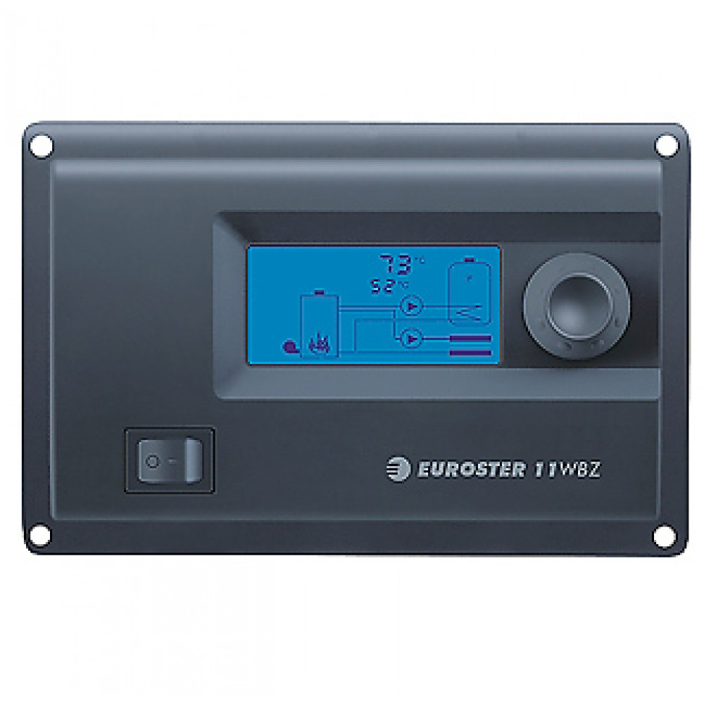 Euroster 11WBZ це контролер, призначений для взаємодії з твердопаливними котлами центрального опалення з припливною вентиляцією, в установках з баком-акумулятором ГВП. Контролер вимірює температуру котла і бака-акумулятора ГВП.
