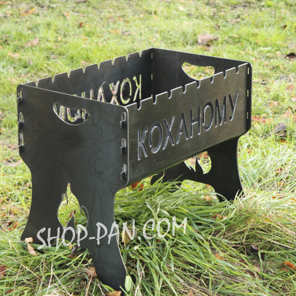 Мангал розбірний ДОРОГОГО КУМА з індивідуальним надписом - подарунковийІменний мангал - кращий подарунок для чоловіка. Кожен замовник може розробити власний дизайн виробу, придумати написи або прикрасити його різними зображеннями. Це додаткова перевага високо цінується любителями унікальних виробів. За допомогою сучасного плазморіза наші майстри створюють будь-які вироби з металу. Вартість створення складних зображень розраховується індивідуально. Великою зручністю є те, що в розібраному вигляді мангал можна переносити у чохлі як валізку. Купуючи подібний виріб наш клієнт отримує: · Високоякісний товар з нескінченним терміном використання. · Уважний підхід до створення шкірного виробу. · Розробка індивідуального дизайну мангалу. · Відображення на стінках будь-яких написів, символів. · Конструкція вирізається з міцного товстостінного металу. · Зберігає зовнішній вигляд і не деформується. · Повністю розбірний, займає мінімум місця.
