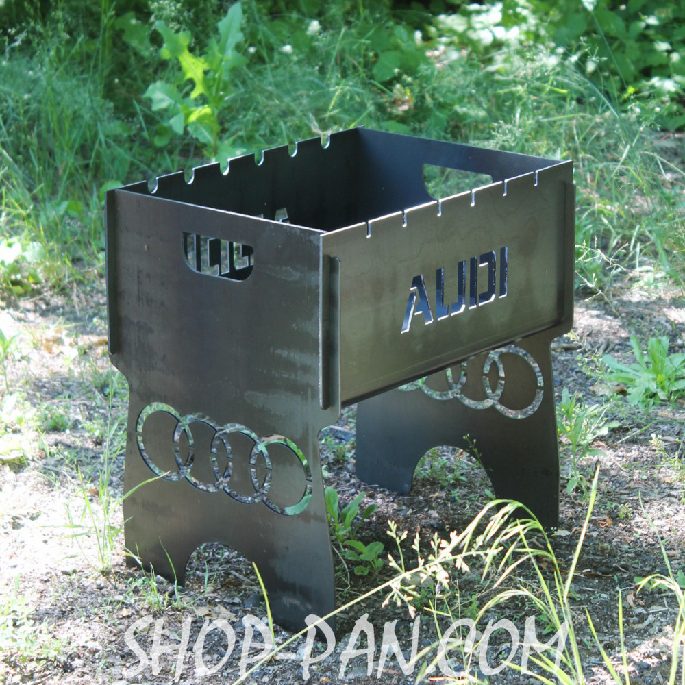 Мангал розбірний з індивідуальним гравіюванням - AUDI - на подарунокМангал – чудовий подарунок прихильникам відпочинку на свіжому повітрі. А оригінальний іменний мангал, виготовлений за індивідуальним замовленням – це кращий спосіб вразити одного турботою та неординарним підходом до пошуку подарунків. Компактний мангал виготовлений з якісного металу, прослужить не одне десятиліття. Вигравіювати на ньому можна все що завгодно: ініціали власника, побажання, мотивуючі фрази або жартівливий підпис, якій оцінить ваш близький друг. Замовляйте іменний мангал у коробці с гравіюванням! Вартість створення складних зображень розраховується індивідуально. Великою зручністю є те, що в розібраному вигляді мангал можна переносити в чохлі як чемоданчик. Купуючи подібний виріб наш клієнт отримує: · Високоякісний товар з нескінченним терміном використання. · Уважний підхід до створення кожного виробу. · Розробка індивідуального дизайну мангала. · Відображення на стінках будь-яких написів, символів. · Конструкція вирізається з міцного товстостінного металу. · Зберігає зовнішній вигляд і не деформується. · Повністю розбірний, займає мінімум місця.