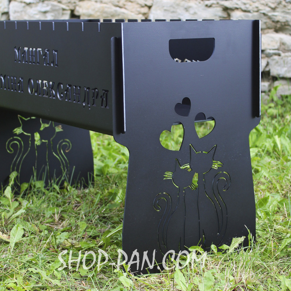 Мангал розбірний з індивідуальним надписом - на подарунокМангал – чудовий подарунок прихильникам відпочинку на свіжому повітрі. А оригінальний іменний мангал, виготовлений за індивідуальним замовленням – це кращий спосіб вразити одного турботою та неординарним підходом до пошуку подарунків. Компактний мангал виготовлений з якісного металу, прослужити не одне десятиліття. Вигравіювати на ньому можна все що завгодно: ініціали власника, побажання, мотивуючі фрази або жартівливий підпис, якій оцінить ваш близький друг. Замовляйте іменний мангал у коробці з гравіюванням! Вартість створення складних зображень розраховується індивідуально. Великою зручністю є те, що в розібраному вигляді мангал можна переносити у чохлі як валізку. Купуючи подібний виріб наш клієнт отримує: · Високоякісний товар з нескінченним терміном використання. · Уважний підхід до створення шкірного виробу. · Розробка індивідуального дизайну мангала. · Відображення на стінках будь-яких написів, символів. · Конструкція вирізається з міцного товстостінного металу. · Зберігає зовнішній вигляд і не деформується. · Повністю розбірний, займає мінімум місця.