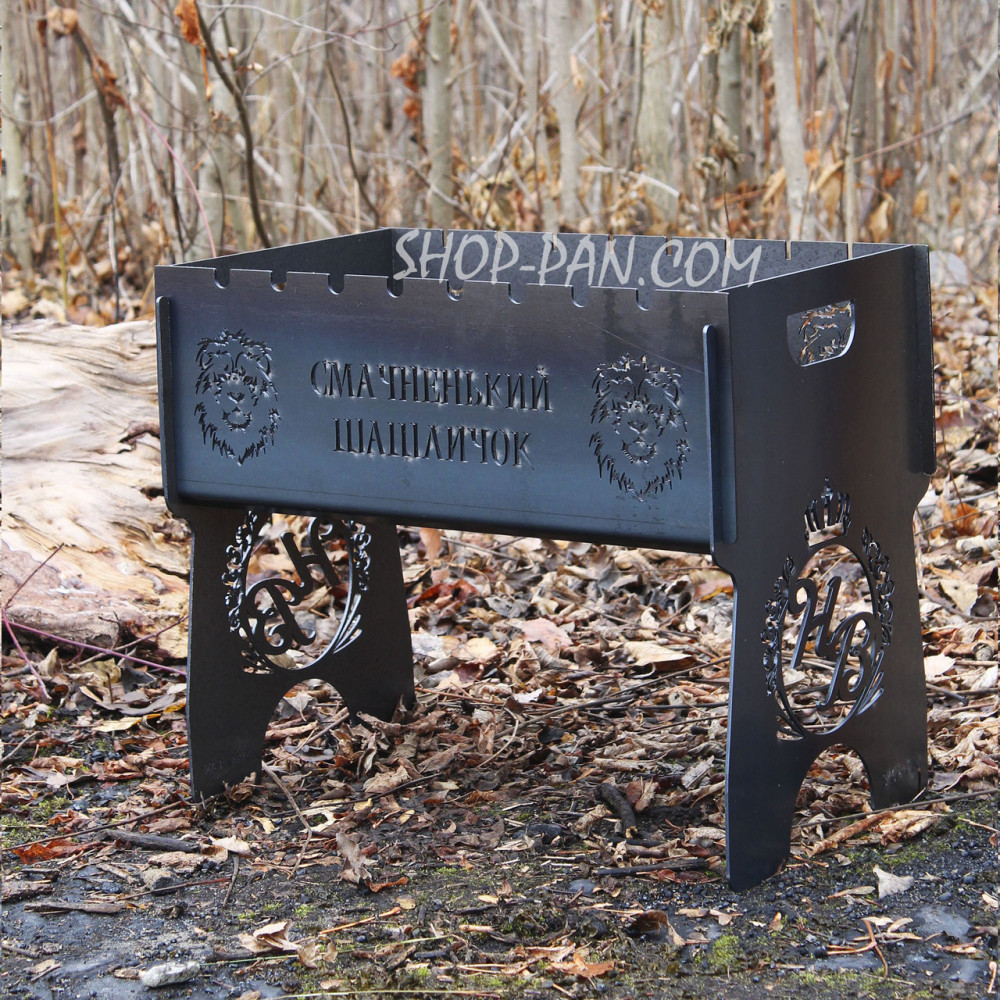 Мангал розбірний з індивідуальним гравіюванням - СМАЧНЕНЬКИЙ ШАШЛИЧОКМангал – чудовий подарунок прихильникам відпочинку на свіжому повітрі. А оригінальний іменний мангал, виготовлений за індивідуальним замовленням – це кращий спосіб вразити одного турботою та неординарним підходом до пошуку подарунків. Компактний мангал виготовлений з якісного металу, прослужити не одне десятиліття. Вигравіювати на ньому можна все що завгодно: ініціали власника, побажання, мотивуючі фрази або жартівливий підпис, якій оцінить ваш близький друг. Замовляйте іменний мангал у коробці з гравіюванням! Вартість створення складних зображень розраховується індивідуально. Великою зручністю є те, що в розібраному вигляді мангал можна переносити у чохлі як валізку. Купуючи подібний виріб наш клієнт отримує: Високоякісний товар з нескінченним терміном використання. Уважний підхід до створення шкірного виробу. Розробка індивідуального дизайну мангалу. Відображення на стінках будь-яких написів, символів. Конструкція вирізається з міцного товстостінного металу. Зберігає зовнішній вигляд і не деформується. Повністю розбірний, займає мінімум місця.