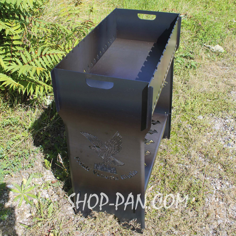 Мангал розбірний високий на 14 шампурів із підставкою для дров та індивідуальним гравіюваннямМангал розбірний високий (з декоративною опорною перегородкою для дров або вугілля) Виготовимо мангали з якісної та довговічної сталі. Пропонуємо високий мангал із декоративною опорною перегородкою для дров і вугілля за доступною ціною. Наші мангали мають естетичний вигляд, зручні у використанні та догляді. У каталозі представлені моделі різних розмірів на різну кількість шампурів, від 6 до 16. Високий розбірний мангал зручний не тільки у використанні, але й у транспортуванні та зберіганні. Розбірна конструкція не займає багато місця, збирається швидко без особливих інструментів. Мангал має перегородку, яку можна використовувати як підставку для дров і вугілля, що робить його експлуатацію зручнішою. Виріб виготовлений із якісного металу, що не виділяє шкідливих речовин під час нагрівання, зберігає правильно форму впродовж тривалої експлуатації. Матеріал стійкий до пошкоджень і корозії.