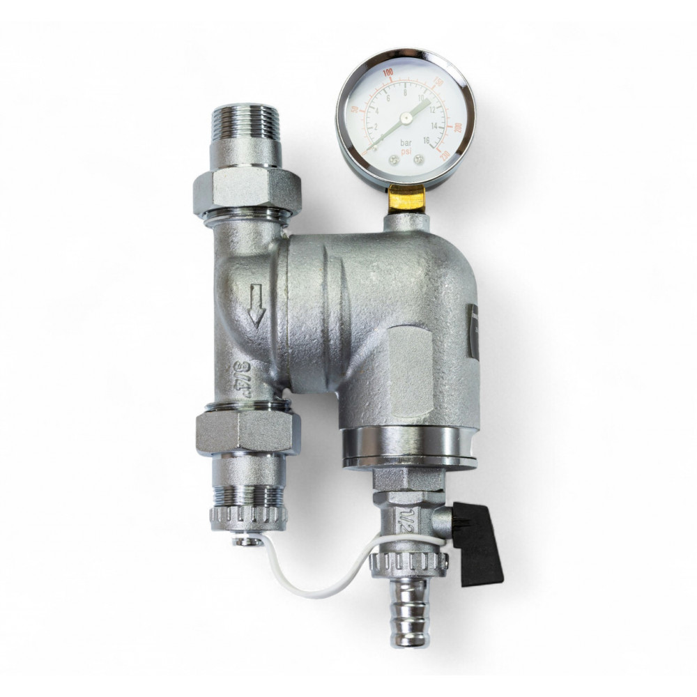 1.Самопромивний фільтр в зборі (1 шт) 2.Манометр (1 шт) 3.Кульовий клапан для зливу (1 шт) 4.Накінечник для шлангу (1 шт) 5.Інструкція українською мовою (1 шт)