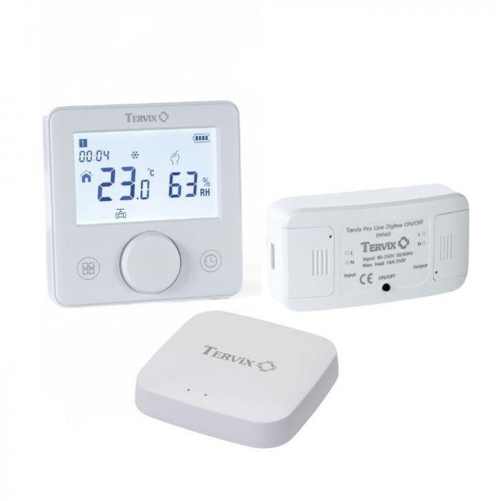 Комплект для сучасного та зручного керування системою опалення у вашому будинку або офісі. Він об’єднує безпровідний термостат, реле On/Off 220 В та ZigBee контролер, забезпечуючи надійне регулювання температури та повну інтеграцію до системи «Розумний будинок». 1. - призначений для вимірювання температури та налаштування бажаного клімату в приміщенні. Підтримує роботу з опалювальним обладнанням через бездротову мережу ZigBee, сумісний з популярними додатками Tervix, Tuya Smart, Smart Life для дистанційного керування прямо зі смартфону. 2. - розумний перемикач для включення або вимкнення подачі напруги (90–250 В) на зовнішні пристрої опалення та електрообладнання. Працює по протоколу ZigBee і взаємодіє з контролером та мобільними застосунками Tervix, Tuya Smart, Smart Life. Пристрій також може виступати ретранслятором сигналу, що розширює зону дії мережі «Розумного будинку». 3. - центральний вузол системи, який забезпечує зв’язок між усіма ZigBee пристроями та вашим смартфоном через домашню Wi-Fi мережу. Працює зі стандартом ZigBee 3.0, підтримує підключення великої кількості пристроїв та дозволяє створювати автоматичні сценарії управління опаленням. Переваги комплекту: Просте встановлення без складного монтажу. Повна інтеграція в систему Розумний будинок із підтримкою популярних мобільних додатків. Стабільна робота по ZigBee з можливістю розширення мережі. Універсальне рішення для котлів, конвекторів, електричних обігрівачів і інших пристроїв керування опаленням. ]]>