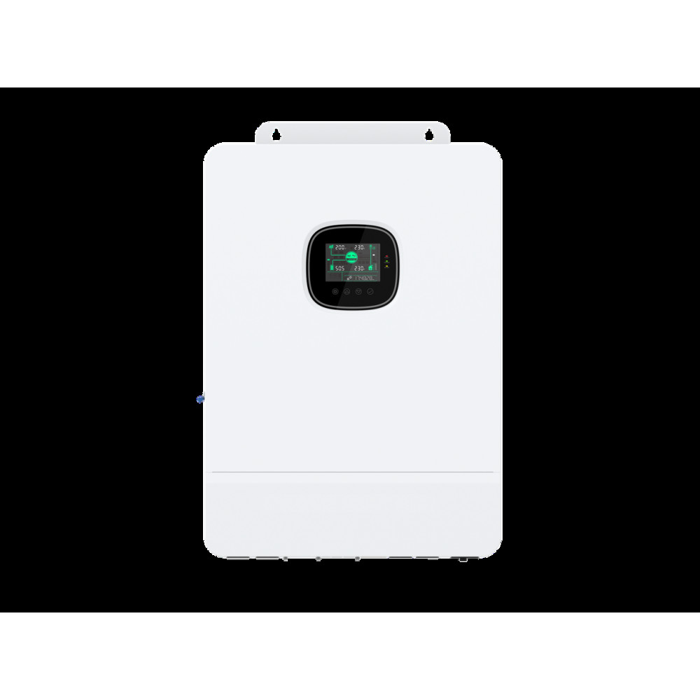 Гібридний інвертор Tervix — це універсальний однофазний гібридний сонячний інвертор, який поєднує можливість накопичення енергії (зарядки акумулятора) від сонячних панелей і від звичайної електромережі. На виході інвертор видає змінний струм 220В із "чистою" синусоїдою. Завдяки DSP управлінню та розширеному алгоритму управління, він має високу швидкість відгуку, високу надійність та високий промисловий стандарт. Інвертор має чотири режими накопичення енергії (заряджання акумулятора): - Only Solar - тільки від сонячних панелей. - PV priority - пріоритет зарядки від сонячних панелей. Якщо з якихось причин зарядка не йде від сонячних панелей, то автоматично буде йти зарядка від загальної електромережі. - Mains priority - пріоритет зарядки від сонячних панелей. - Hybrid charging (Mains + PV) - гібридний режим – зарядка буде йти від сонячних панелей (пріоритет), але якщо їх потужності не достатньо, то зарядка буде йти від загальної електромережі. Коли потужності сонячних панелей буде достатньо, то зарядка знову буде відбуватися від сонячних панелей. Доступні два режими виходу змінного струму: - інверторний – з використанням сонячних панелей та акумулятора; - мережевий (байпас) – з використанням загальної електромережі; Модуль зарядки від сонячних панелей використовує найновішу оптимізовану технологію MPPT, для швидкого відстеження точки максимальної потужності сонячних панелей в будь-якому середовищі та отримання максимальної енергії сонячної панелі в режимі реального часу. За допомогою сучасного алгоритму керування зарядний модуль AC-DC реалізує повністю цифрове управління з подвійним закритим контуром напругою та струмом, із високою точністю керування в невеликому об’ємі. Широкий діапазон вхідної напруги змінного струму та повний захист входу/виходу призначені для стабільної та надійної зарядки акумулятора та його захисту. Завдяки повністю цифровому інтелектуальному дизайну, модуль інвертора DC-AC використовує передову технологію SPWM і видає «чисту» синусоїду для перетворення постійного струму в змінний. Він ідеально підходить для споживачів змінного струму, таких як побутова техніка, електроінструменти, промислове обладнання та електронне аудіо- та відео обладнання. Інвертор оснащений сегментним РК-дисплеєм, який дозволяє відображати робочі дані та стан системи в реальному часі. Комплексний електронний захист робить всю систему безпечнішою та стабільнішою. Особливості: - Підтримує підключення свинцево-кислотних та літій-іонних акумуляторів. - Повне цифрове керування напругою та струмом з подвійним закритим контуром, передова технологія SPWM, вихід чистої синусоїди - З функцією подвійної активації, коли літій-іонний акумулятор знаходиться в режимі очікування, тоді електромережа або живлення від сонячних панелей може викликати активацію літій-іонного акумулятора. - Підтримує трифазний режим роботи з виходом чистої синусоїди (350-415В). - Підтримує налаштування напруги фази в діапазоні 200, 208, 220, 230 і 240 В АС. - Підтримка двох входів для сонячних панелей і одночасне відстеження двох сонячних масивів панелей для максимальної потужності зарядки/пропускної здатності. - Подвійний MPPT з ефективністю 99,9% і максимальним струмом 22А в одному контурі, ідеально адаптований до потужних сонячних масивів високої потужності. - Доступні 4 режими зарядки: тільки від соняч
