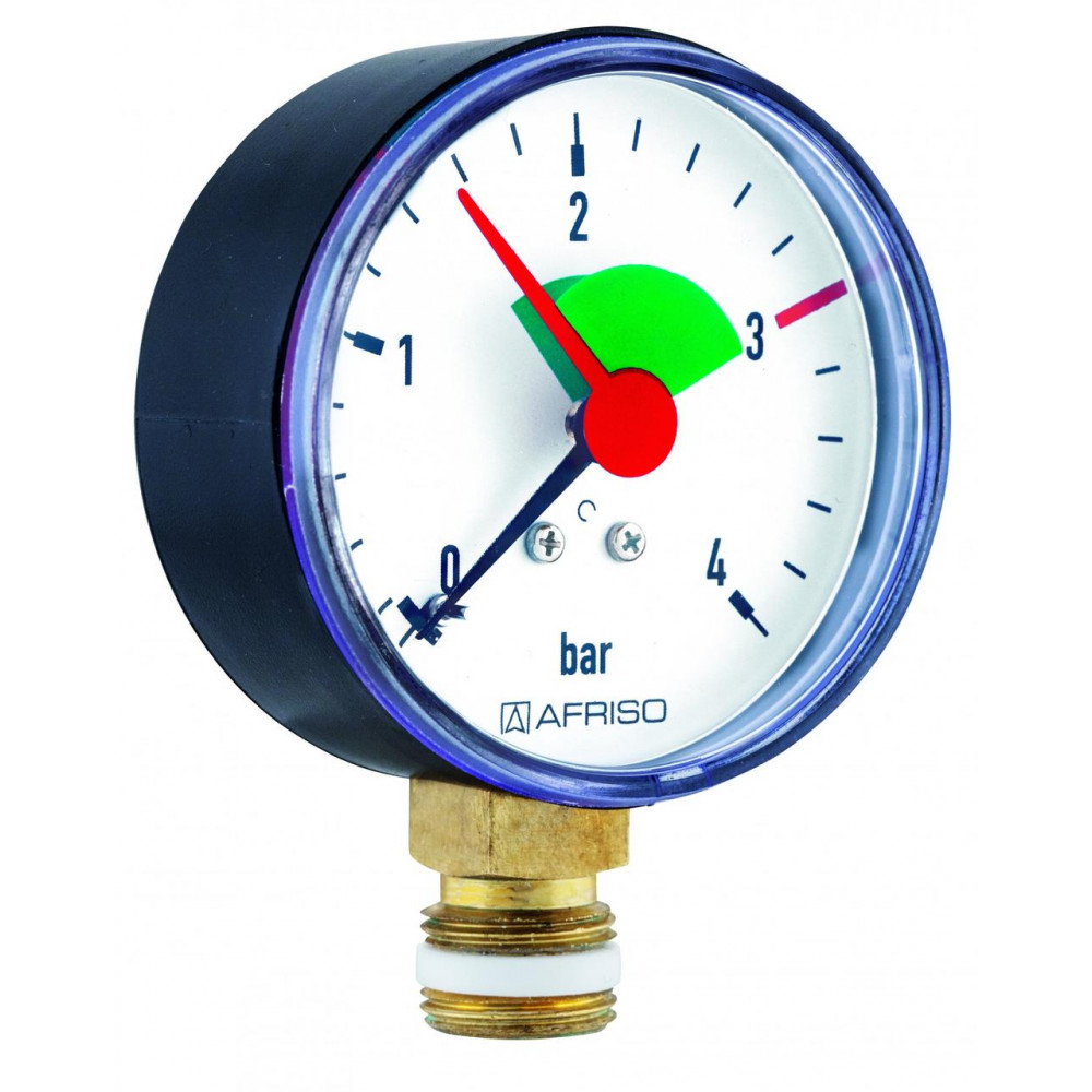 Аналог: Фронтальні манометри з заднім підключенням Afriso HZ 50 EXC призначені для вимірювання тиску рідких та газоподібних речовин, які не є надто грузлими, застиглими або корозійними для мідних сплавів. Діапазон вимірювання тиску: 0-4 бар, червона риска на 3 бар, з регульованою червоною маркувальної стрілкою з зеленим сектором від 1,5 до 3 бар Корпус: Ударостійкий пластик Скло: Метакрилат Стрілка: Чорний пластик Чорний пластик Стрілочний пристрій: Латунь Циферблат: Пластик пофарбований невигораючою фарбою і покритий захисним шаром лаку Вимірювальний елемент: трубка Бурдона з мідного сплаву З'єднання: Латунь ]]>
