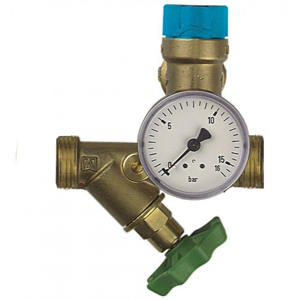 Запобіжний клапан 6 бар, 1/2" х 3/4". Манометр 0/16 бар, Ø 50, 1/4", екс