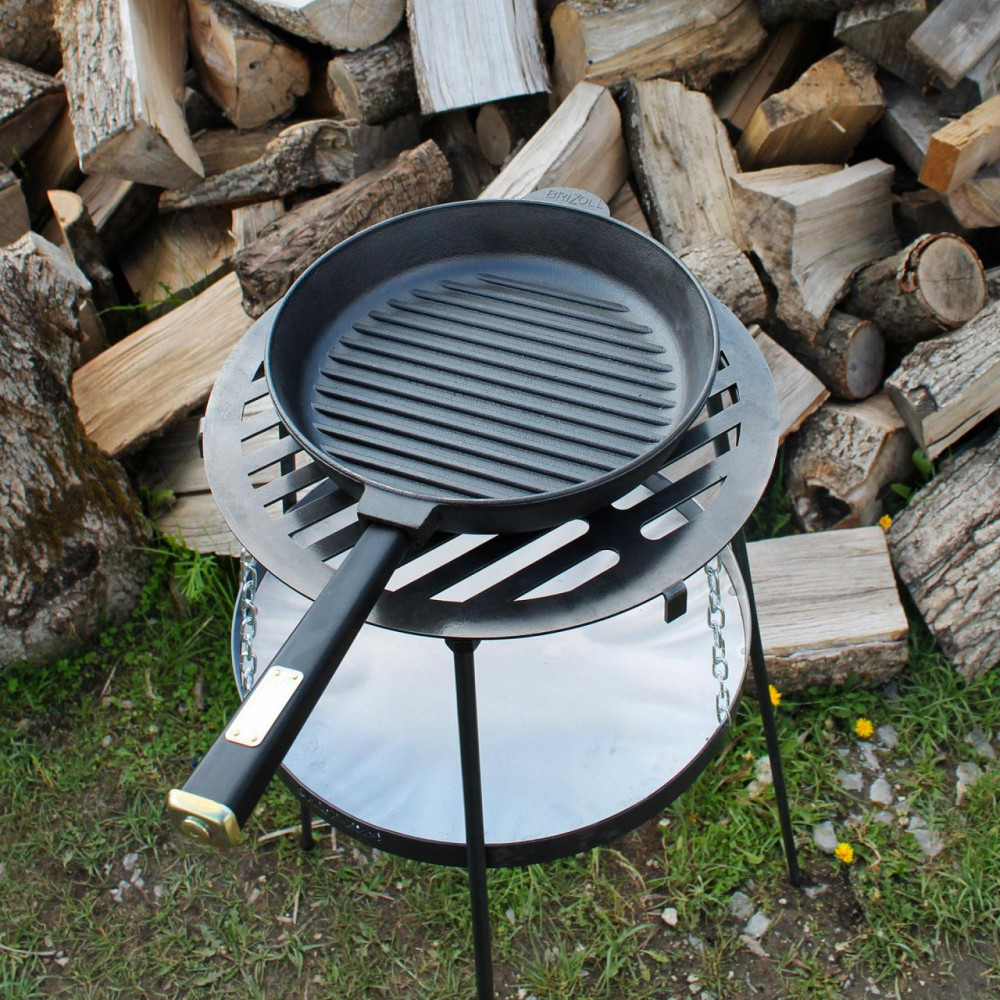 Сковорідка гриль — незамінний помічник у приготуванні соковитих м'ясних стейків, овочів гриль, ковбасок із хрусткою скоринкою тощо. Характеристики Діаметр 28 см Об'єм 2.8 л Висота 5.5 см Висота ребер 4 мм Товщина дна 4.5 мм Вага 3.4 кг Саме завдяки своїй унікальній формі, страви, приготовані в чавунній сковороді гриль, виходять дуже смачними! Спеціальне рифлене дно сприяє утворенню хрусткої скоринки, залишаючи страву соковитою всередині. Нічого не підгоряє, зайвий жир стікає в канавки, не насичуючи страву. Страви, приготовані в чавунній сковороді, на смак не йдуть у порівнянні з жодними іншими. Сковорода гриль має зручну квадратну дерев'яну ручку, яка не нагрівається, надійно закріплена та добре лежить у руці.