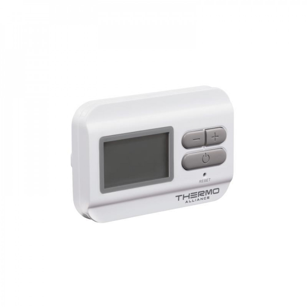 Денний термостат Thermo Alliance ТА-2301 підключається до котла за допомогою кабелю та керує процесами увімкнення/вимкнення опалювального приладу за "Сухим Каналом". Блок кімнатного термостата використовується як графічний інтерфейс користувача для визначення та контролю температури в приміщенні. Оскільки відстань від кімнатного термостата до котла в різних приміщеннях відрізнятиметься, кабель підключення не входить до комплекту постачання продукції.