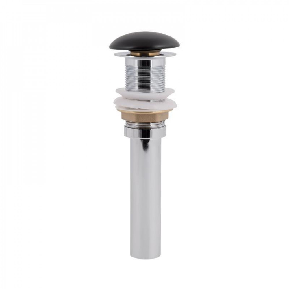 Донний клапан для раковини Qtap PU03 MATT BLACK виконаний з чорною матовою кришкою з кераміки і фурнітури з латуні в хромованому кольорі, що дає можливість поєднувати його з раковинами з таким же покриттям. Виріб дозволить перекрити зливний отвір в разі потреби і використовувати раковину як таз. З'єднання універсальне зі стандартним кроком різьблення підійде під будь-який сифон. Автоматичний тип керування дозволяє без особливих зусиль керувати набором і зливом води.