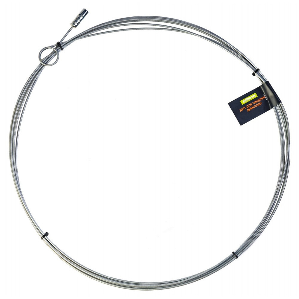 Дріт сталевий оцинкований для чищення димоходу довжиною 6 метрів призначений для механічного чищення димохідних труб, вентиляційних каналів, каналізації. Виготовлений з пружинної оцинкованої сталі та має діаметр 3,8 мм. На одному кінці дріт має внутрішню різьбу М12, а на іншому – кільце для зручності тримання. Завдяки гнучкості та пружності дроту ви зможете швидко і ефективно видалити сажу та інші відкладення в димоході. Для цього вам потрібно з’єднати його з металевою чи пластиковою щіткою для чищення димоходу, яка має зовнішню різьбу М12. Дріт виготовляється довжиною 6, 8, 10 і 12 метрів.