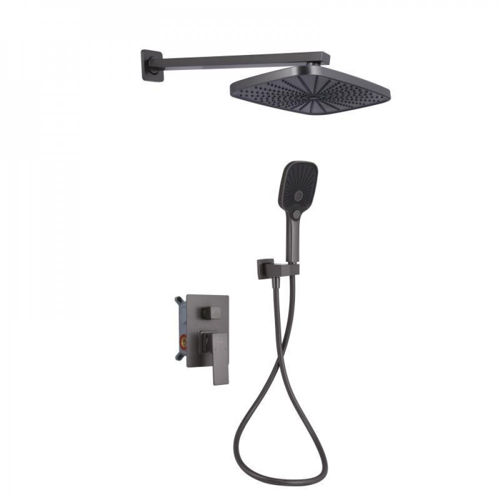 Душова система для душу прихованого монтажу на два споживачі Qtap Gemini QTGEM113GMB45698 у виконанні Gunmetal Black PVD відрізняється стильним дизайном та високою міцністю. Система включає верхній та ручний душ, що робить її зручним та функціональним рішенням для ванної кімнати. Покриття Gunmetal Black PVD стійке до корозії та зносу, забезпечуючи тривалий термін служби виробу.