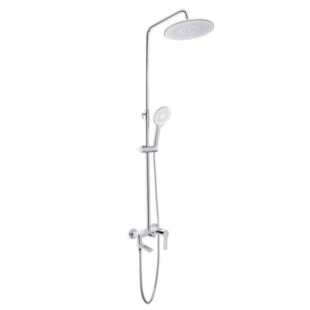 Змішувач, кронштейн для верхнього душу, лійка для верхнього душу, кронштейн для ручного душу, лійка для ручного душу, душовий шланг, душова стійка, деталі кріплення.