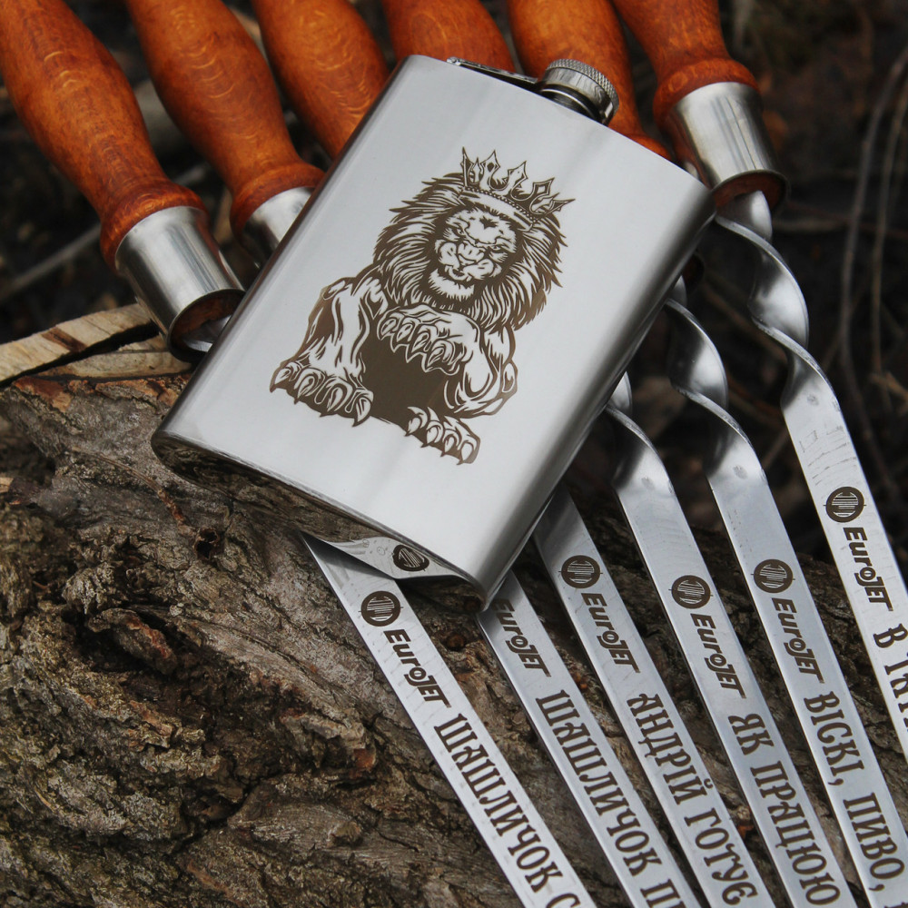 Фляга з індивідуальним гравіюванням — Цар звірівОсобиста фляга — це особливий подарунок з індивідуальним гравіюванням. Це дасть змогу зробити ваш подарунок унікальним і незабутнім. Не знаєте, що подарувати своєму чоловікові, брату, батькові, другові, колезі по роботі на те чи інше свято? Ломаєте голову, що ж це може бути? Ми маємо для вас непогану ідею! Фляги з гравіюванням — ось чудовий подарунок для будь-якого чоловіка! У нас ви можете замовити фляги з логотипом компанії або ж іменні фляги з гравіюванням будь-якого напису, ми з задоволенням виконаємо будь-яке ваше побажання! Всі моделі, представлені на нашому сайті, мають високу якість, вони нетоксичні та стійкі до проявів корозії. Подарувати флягу з логотипом, обраною в нашому магазині, буде не соромно навіть найвищій людині. Крім того, вам доступні й набори металевих стаканчиків, які теж є свого роду сувеніром, але можуть також використовуватися й у похідних умовах, наприклад, на риболовлі. На них теж можливо нанести пам'ятне гравіювання. Ми працюємо всією Україною, тому ви можете замовити фляги під нанесення, хай де ви будете. Ми здійснюємо нанесення на фляги максимально швидко та дбаємо про те, щоб ваше замовлення не затримувалося. Висока якість за найкращою ціною Не знаєте, що написати? Проконсультуйтеся з менеджером магазину та виберіть потрібний варіант із готових шаблонів, представлених на фото. Наші переваги: Бездоганна якість товарів; Індивідуальний підхід; Швидке виконання замовлень; Привабливі ціни; Великий асортимент ескізів. Більше корисних товарів для кемпінгу та кулінарних експериментів на природі ви знайдете в каталозі нашого інтернет-магазину. Пропонуємо великий вибір якісної та доступної продукції, швидко доставляємо товари до всіх регіонів України. Пропонуємо й інші товари з гравіюванням і написами: кришки для сковорідок із диска борони, металеві чарки, підставки під рюмки, дерев'яний віял для роздування вогню, чохол для мангала або сковороди. Ми маємо все для комфортного відпочинку за містом, ознайомтеся з асортиментом на сайті. Потрібна допомога у виборі? Проконсультуйтеся з менеджером магазину по телефону, і фахівець відповість на питання, що цікавлять. ???? Shop-Pan – ваш прямий постачальник туристичного спорядження та ексклюзивних аксесуарів для дому та відпочинку Пропонуємо широкий асортимент товарів для туризму, кемпінгу, риболовлі та пікніків – якісні вироби, перевірені часом та зібрані з любов'ю до деталей. ???? Широкий асортимент продукції У нашому каталозі представлені: ✅ Туристичні сковороди, турбо-пічки, котли, коптильні, ножі, рибальські сумки, ліхтарі та багато іншого ✅ Надійні товари для активного відпочинку, будинки та кухні – все для зручності та натхнення. ✅ Рішення для будь-якого стилю життя - від походів до домашнього затишку ✅ Збалансований вибір: еко-продукція з дерева, кухонні гравівальні дошки, фартухи з вашим принтом, монастирі, мангали, шампури, годинники та постери ✅ Аксесуари з можливістю персоналізації – зробіть свій подарунок унікальним ✅ Якість, естетика та турбота в кожному виробі – без прихованих недоліків та компромісів ???? Професійні консультації Менеджери проконсультують щодо вибору товарів. Працюємо: Пн-Пт 10:00 – 18:00, Сб 11:00 – 16:00. Зв'язок: Viber, Telegram, WhatsApp. ???? Швидка доставка по Україні ???? Замовлення, оформлені до 16:00, н