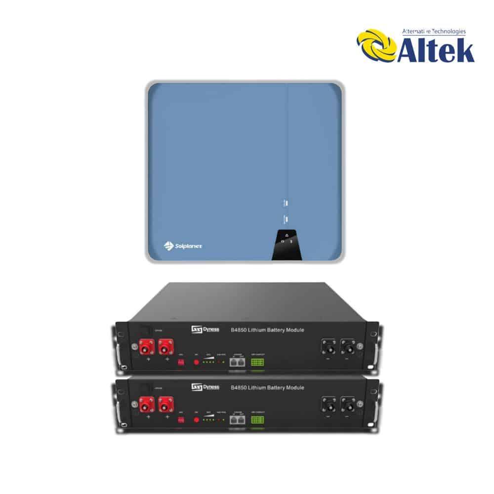 Гібридна станція Solplanet ASW 6K-H-S2, Dyness B4850, 48V - 2.4 кВт (2 шт.)Низьковольтовий гібридний інвертор, 2 виходи МРРТ. Діапазон напруги MPPT: 40 ~ 530VDC. Номінальна вихідна напруга AC - 240 В. Максимальний струм заряду від мережі - 100 А. Напруга АКБ - 48 В.АКБ:Номінальна напруга 48В, ємність 2,4 кВт 50А/г. Глибина розряду - 80%. Максимальний/рекомендований струм заряду - 50А/25А. Максимальний/рекомендований струм розряду - 50А/25А. Тип елементів - LiFePo4. Підключення до інвертора між собою здійснюється спеціальними кабелями, входять в комплект поставки.