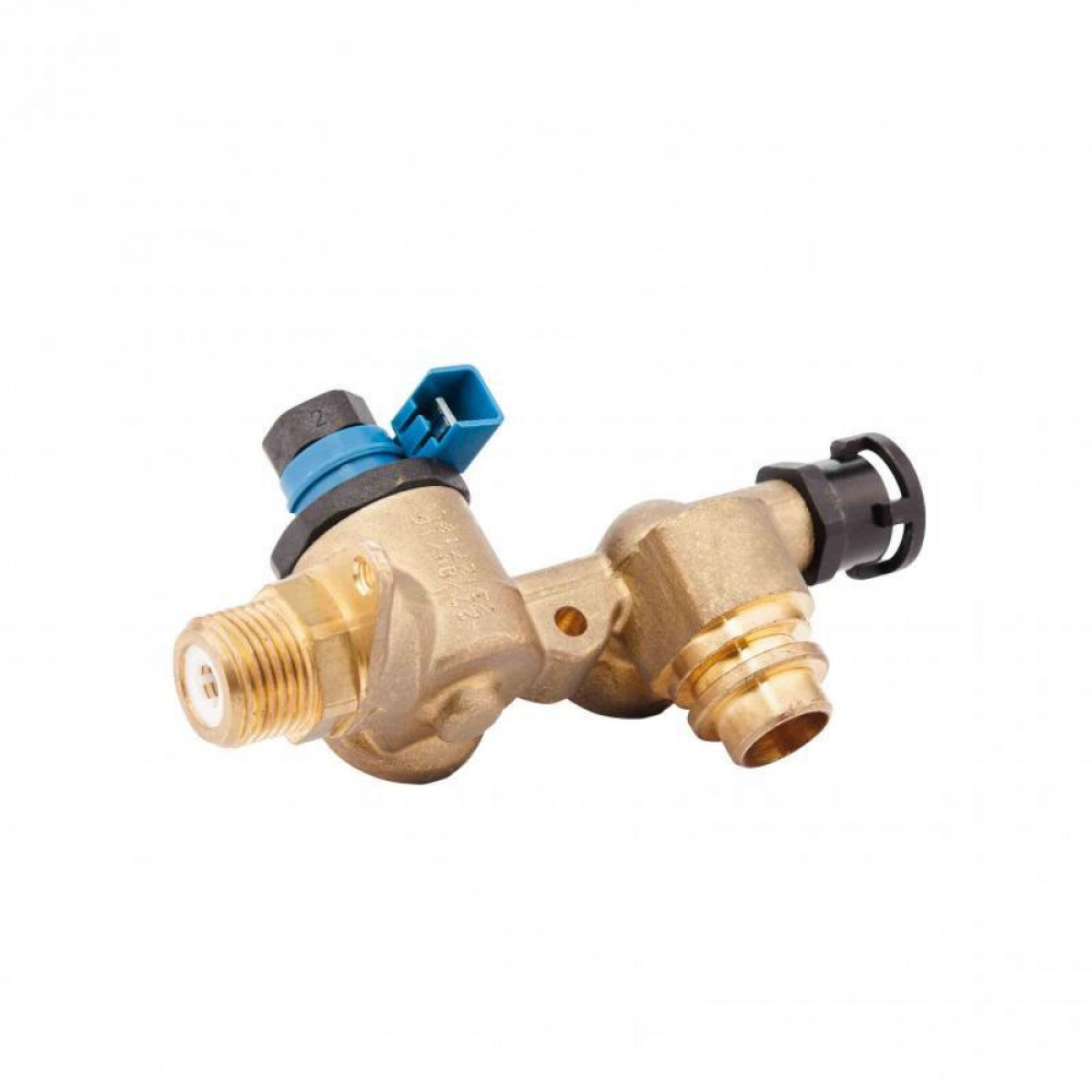 Гідроблок входу 7020680012 призначений для подачі води ГВП у котел для нагріву. У гідроблоці встановлено реле протоки, яке є турбіною і датчиком Холла, які спрацьовують у разі виникнення протоки води для санітарних потреб і дає сигнал котлу на перемикання в режим нагрівання ГВП. Застосовується у газових котлах Airfel Integrity.