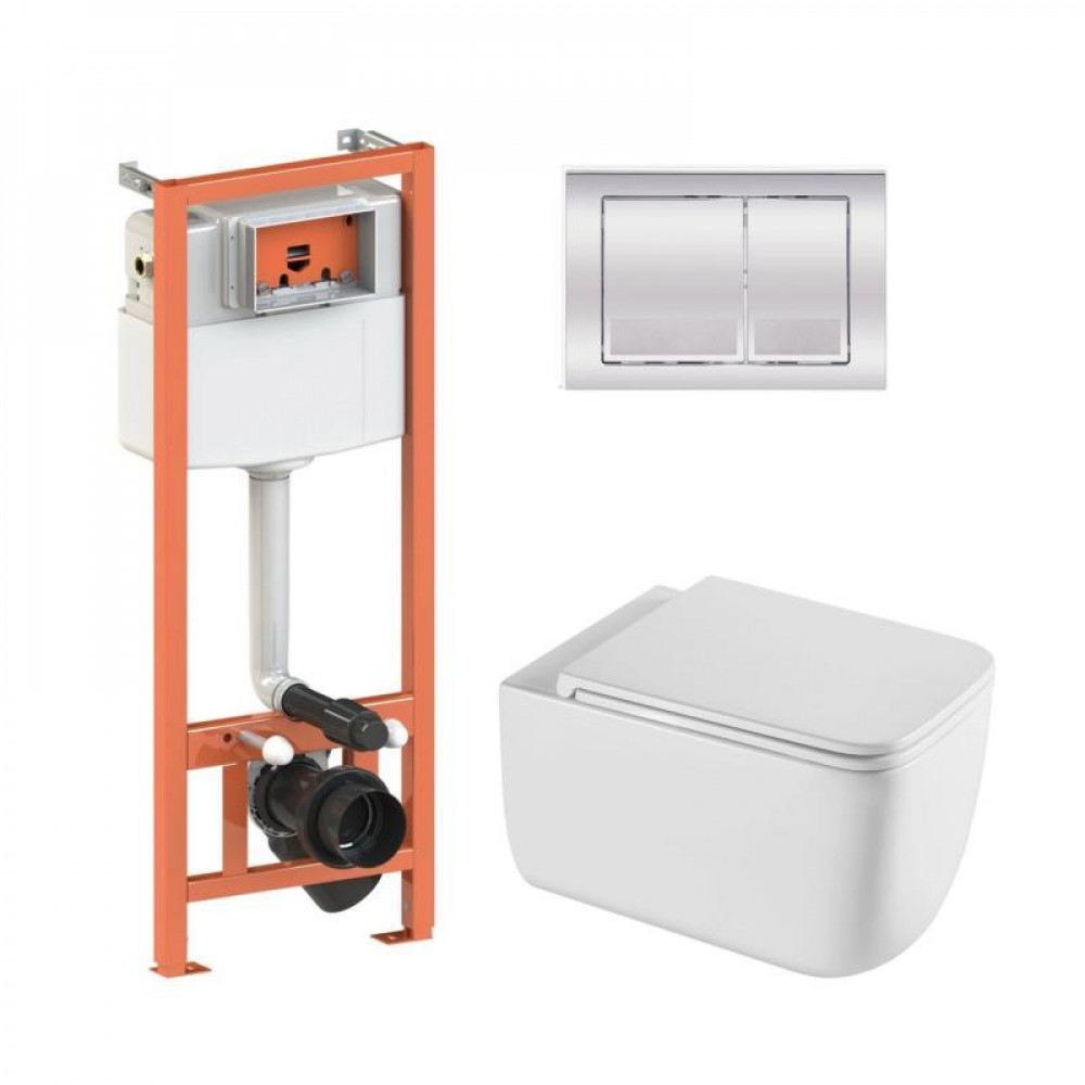 Комплект Qtap Gemini Ultra Quiet унітаз підвісний QT2533076EUQW з Nest комплектом інсталяції 4в1 (Клавіша квадратна Chrome) QT0133M425 + QT0111M06028CRM забезпечує не тільки високу продуктивність і зручність використання, але і естетичне задоволення.