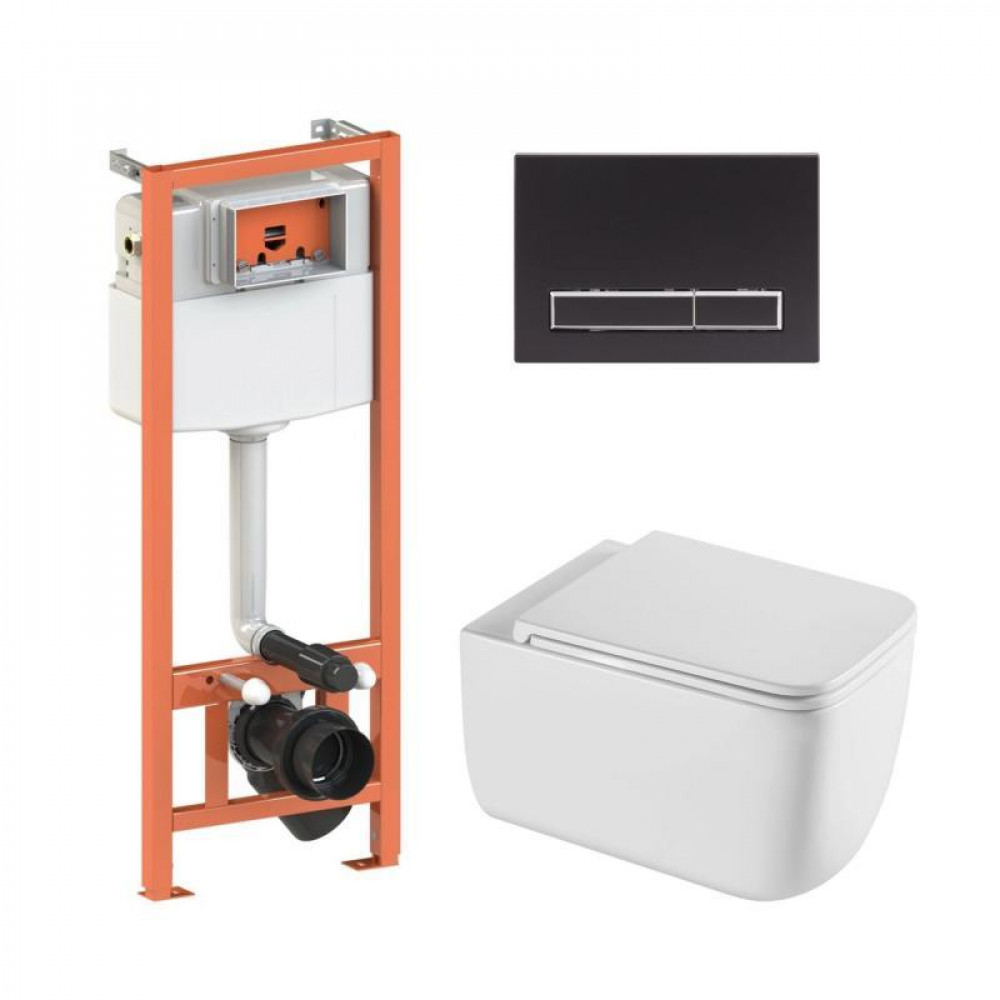Комплект Qtap Gemini Ultra Quiet унітаз підвісний QT2533076EUQW з Nest комплектом інсталяції 4в1 (Клавіша лінійна Black mat) QT0133M425 + QT0111M08V1091MB шарм.