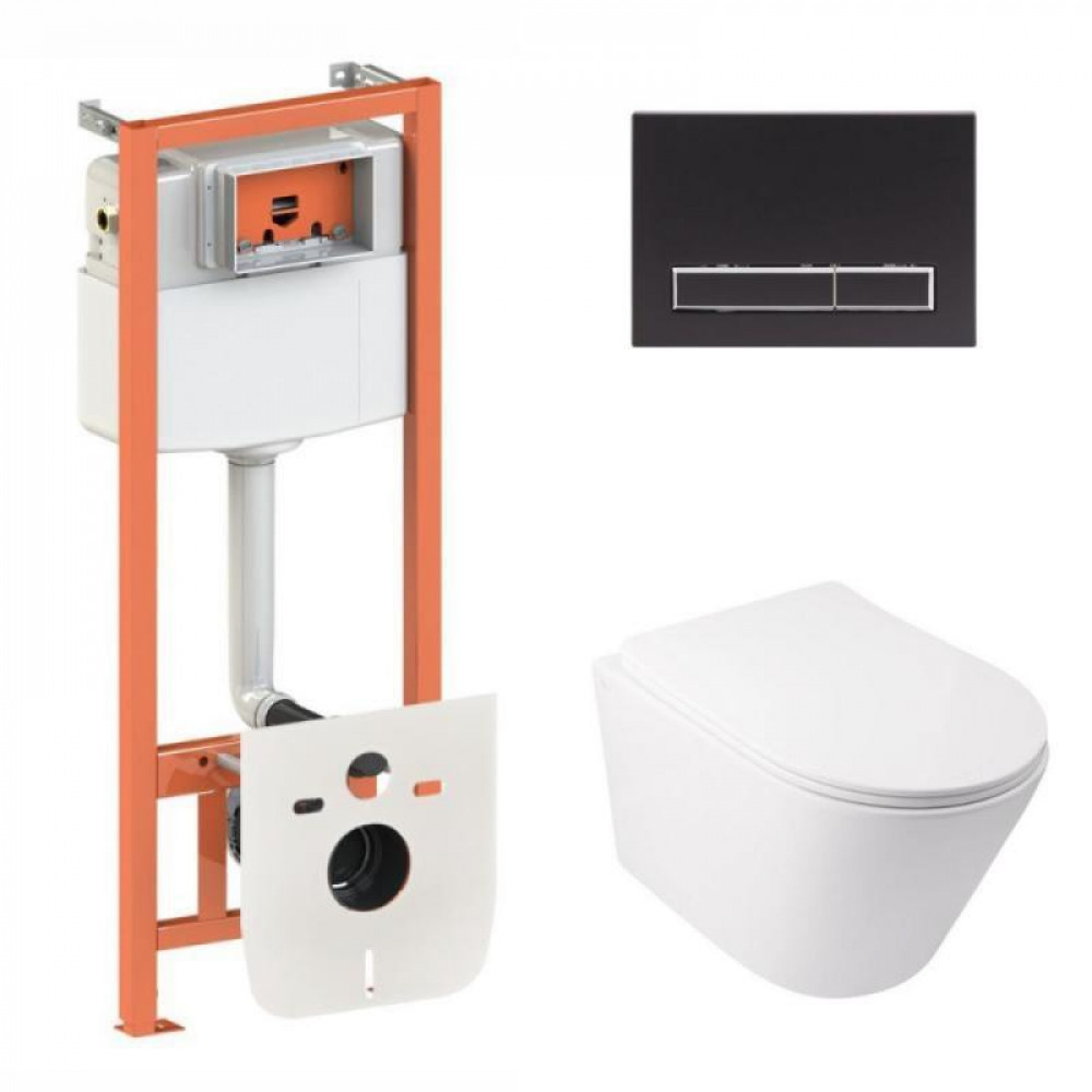 Унітаз, сидіння, кріплення, інсталяція, звукоізоляційна прокладка, комплект підведення води, 2 болти-тримачі для унітазу, вихідна труба для унітазу, панель змиву.