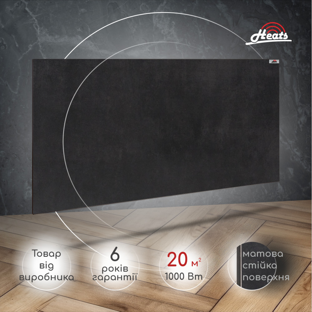 Heats 1000A – керамічний обігрівач з ідеальною матовою поверхнею майже вишуканого темного кольору Anthacite. Цей обігрівач закохає в себе з першого погляду. Стриманий та надійний охоронець вашого комфорту. Дана модель обігрівача не має вбудованого терморегулятора, що дає змогу підключити до нього будь-який вид терморегуляторів від звичайних механічних до найсучасніших електронних з можливістю керування через Wi-Fi. Обігрівач Heats – чудовий представник та незамінний елемент сучасних системи опалення, який розроблений для опалення приміщень будь-якого призначення. Весь модельний ряд даних обігрівачів представлений лінійкою від 200Вт до 1000Вт, створений в ексклюзивній кольоровій гамі найпопулярніших відтінків та має різні види комплектації. Головне завдання обігрівачів Heats – це створення тепла з мінімальними витратами електроенергії, однак не менш важливою місією ТМ «Heats» є зміна відношення споживачів до основних систем опалення. На своєму прикладі керамічні обігрівачі «Heats» показують чудовий приклад естетичного вирішення проблем з холодом, залишаючи далеко позаду конвекційні та водяні системи минулих поколінь