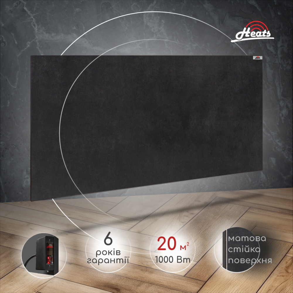 Heats 1000AR – керамічний обігрівач з ідеальною матовою поверхнею майже вишуканого темного кольору Anthacite. Цей обігрівач закохає в себе з першого погляду. Стриманий та надійний охоронець вашого комфорту. Дана модель обігрівача має вбудований терморегулятор, що дає змогу налаштувати економний режим роботи обігрівача та самостійно встановити комфортну температуру в приміщенні. У вимкненому стані на табло регулятора завжди буде відображатись поточна температура в приміщенні. Існуючий режим «Таймер» дозволяє автоматично вимкнути обігрівач через заданий час. Обігрівач Heats – чудовий представник та незамінний елемент сучасних системи опалення, який розроблений для опалення приміщень будь-якого призначення. Весь модельний ряд даних обігрівачів представлений лінійкою від 200Вт до 1000Вт, створений в ексклюзивній кольоровій гамі найпопулярніших відтінків та має різні види комплектації. Головне завдання обігрівачів Heats – це створення тепла з мінімальними витратами електроенергії, однак не менш важливою місією ТМ «Heats» є зміна відношення споживачів до основних систем опалення. На своєму прикладі керамічні обігрівачі «Heats» показують чудовий приклад естетичного вирішення проблем з холодом, залишаючи далеко позаду конвекційні та водяні системи минулих поколінь