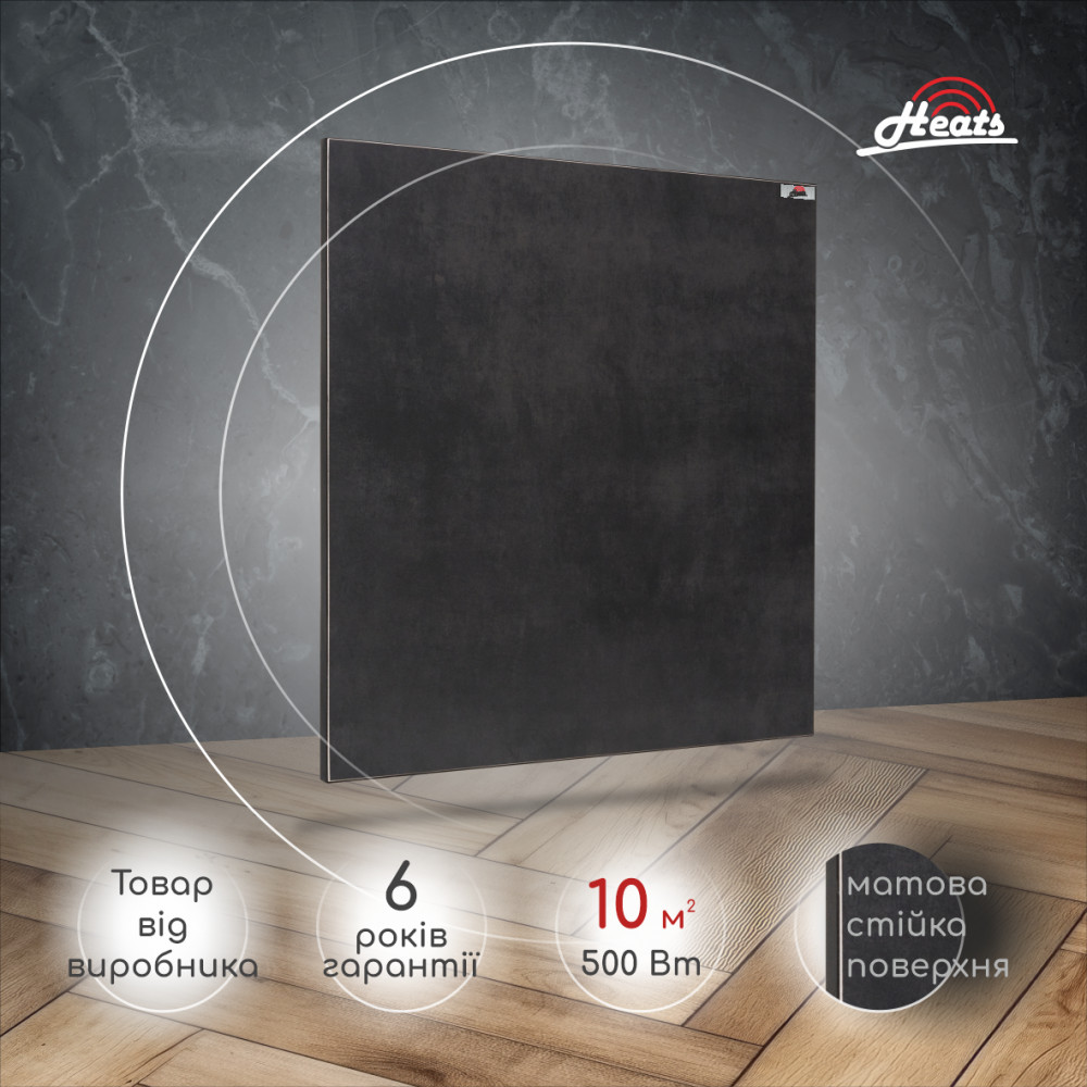 Heats 500A – керамічний обігрівач з ідеальною матовою поверхнею майже вишуканого темного кольору Anthacite. Цей обігрівач закохає в себе з першого погляду. Стриманий та надійний охоронець вашого комфорту. Дана модель обігрівача не має вбудованого терморегулятора, що дає змогу підключити до нього будь-який вид терморегуляторів від звичайних механічних до найсучасніших електронних з можливістю керування через Wi-Fi. Обігрівач Heats – чудовий представник та незамінний елемент сучасних системи опалення, який розроблений для опалення приміщень будь-якого призначення. Весь модельний ряд даних обігрівачів представлений лінійкою від 200Вт до 1000Вт, створений в ексклюзивній кольоровій гамі найпопулярніших відтінків та має різні види комплектації. Головне завдання обігрівачів Heats – це створення тепла з мінімальними витратами електроенергії, однак не менш важливою місією ТМ «Heats» є зміна відношення споживачів до основних систем опалення. На своєму прикладі керамічні обігрівачі «Heats» показують чудовий приклад естетичного вирішення проблем з холодом, залишаючи далеко позаду конвекційні та водяні системи минулих поколінь