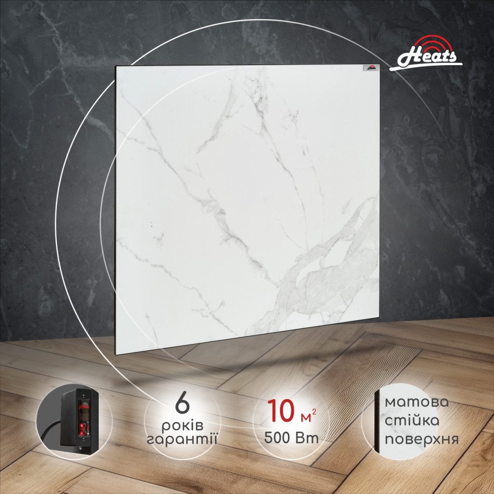 Heats 500ОR – керамічний обігрівач з ідеальною матовою поверхнею білого кольору ORO з ледве помітним ефектом мармуру. Найпопулярніший колір серед наших клієнтів за останні декілька років. Чудовий варіант для інтер’єрів, головним акцентом яких є білий. Дана модель обігрівача має вбудований терморегулятор, що дає змогу налаштувати економний режим роботи обігрівача та самостійно встановити комфортну температуру в приміщенні. У вимкненому стані на табло регулятора завжди буде відображатись поточна температура в приміщенні. Існуючий режим «Таймер» дозволяє автоматично вимкнути обігрівач через заданий час. Обігрівач Heats – чудовий представник та незамінний елемент сучасних системи опалення, який розроблений для опалення приміщень будь-якого призначення. Весь модельний ряд даних обігрівачів представлений лінійкою від 200Вт до 1000Вт, створений в ексклюзивній кольоровій гамі найпопулярніших відтінків та має різні види комплектації. Головне завдання обігрівачів Heats – це створення тепла з мінімальними витратами електроенергії, однак не менш важливою місією ТМ «Heats» є зміна відношення споживачів до основних систем опалення. На своєму прикладі керамічні обігрівачі «Heats» показують чудовий приклад естетичного вирішення проблем з холодом, залишаючи далеко позаду конвекційні та водяні системи минулих поколінь