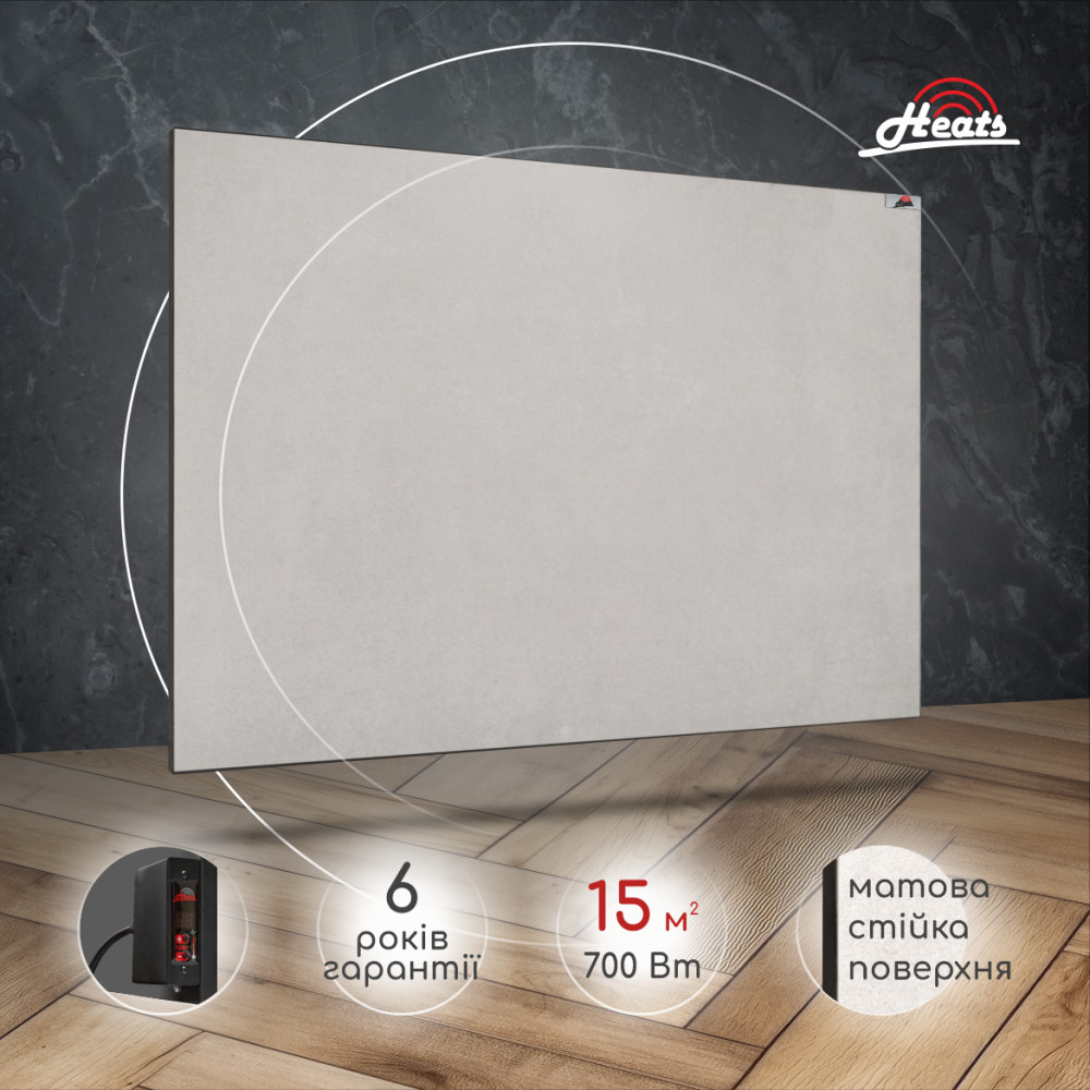 Heats 700LR – керамічний обігрівач з ідеальною матовою поверхнею витриманий в стриманому стилі LOFT. Абсолютний «Хіт-продажу»! Обігрівачі в даному кольорі здатні гармонійно доповнити більшість інтер’єрів, незалежно від його стилю. Дана модель обігрівача має вбудований терморегулятор, що дає змогу налаштувати економний режим роботи обігрівача та самостійно встановити комфортну температуру в приміщенні. У вимкненому стані на табло регулятора завжди буде відображатись поточна температура в приміщенні. Існуючий режим «Таймер» дозволяє автоматично вимкнути обігрівач через заданий час. Обігрівач Heats – чудовий представник та незамінний елемент сучасних системи опалення, який розроблений для опалення приміщень будь-якого призначення. Весь модельний ряд даних обігрівачів представлений лінійкою від 200Вт до 1000Вт, створений в ексклюзивній кольоровій гамі найпопулярніших відтінків та має різні види комплектації. Головне завдання обігрівачів Heats – це створення тепла з мінімальними витратами електроенергії, однак не менш важливою місією ТМ «Heats» є зміна відношення споживачів до основних систем опалення. На своєму прикладі керамічні обігрівачі «Heats» показують чудовий приклад естетичного вирішення проблем з холодом, залишаючи далеко позаду конвекційні та водяні системи минулих поколінь