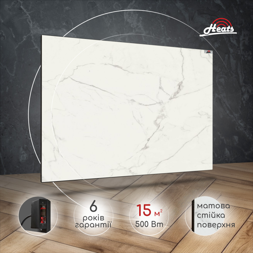 Heats 700ОR – керамічний обігрівач з ідеальною матовою поверхнею білого кольору ORO з ледве помітним ефектом мармуру. Найпопулярніший колір серед наших клієнтів за останні декілька років. Чудовий варіант для інтер’єрів, головним акцентом яких є білий. Дана модель обігрівача має вбудований терморегулятор, що дає змогу налаштувати економний режим роботи обігрівача та самостійно встановити комфортну температуру в приміщенні. У вимкненому стані на табло регулятора завжди буде відображатись поточна температура в приміщенні. Існуючий режим «Таймер» дозволяє автоматично вимкнути обігрівач через заданий час. Обігрівач Heats – чудовий представник та незамінний елемент сучасних системи опалення, який розроблений для опалення приміщень будь-якого призначення. Весь модельний ряд даних обігрівачів представлений лінійкою від 200Вт до 1000Вт, створений в ексклюзивній кольоровій гамі найпопулярніших відтінків та має різні види комплектації. Головне завдання обігрівачів Heats – це створення тепла з мінімальними витратами електроенергії, однак не менш важливою місією ТМ «Heats» є зміна відношення споживачів до основних систем опалення. На своєму прикладі керамічні обігрівачі «Heats» показують чудовий приклад естетичного вирішення проблем з холодом, залишаючи далеко позаду конвекційні та водяні системи минулих поколінь