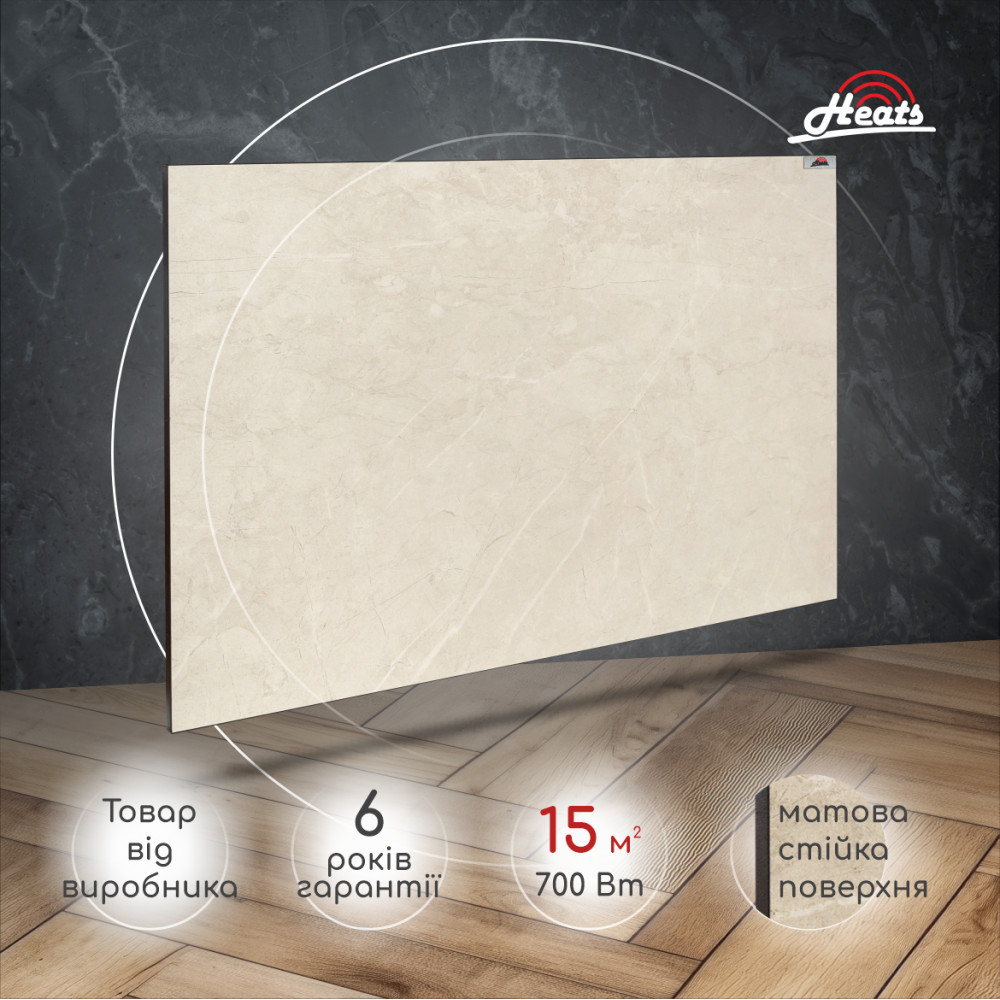 Heats 700S – керамічний обігрівач з ідеальною матовою поверхнею теплого бежевого відтінку Stone. Цей обігрівач сподобається поціновувачам спокійних класичних інтер’єрів та з легкістю стане їх частиною. Дана модель обігрівача не має вбудованого терморегулятора, що дає змогу підключити до нього будь-який вид терморегуляторів від звичайних механічних до найсучасніших електронних з можливістю керування через Wi-Fi. Обігрівач Heats – чудовий представник та незамінний елемент сучасних системи опалення, який розроблений для опалення приміщень будь-якого призначення. Весь модельний ряд даних обігрівачів представлений лінійкою від 200Вт до 1000Вт, створений в ексклюзивній кольоровій гамі найпопулярніших відтінків та має різні види комплектації. Головне завдання обігрівачів Heats – це створення тепла з мінімальними витратами електроенергії, однак не менш важливою місією ТМ «Heats» є зміна відношення споживачів до основних систем опалення. На своєму прикладі керамічні обігрівачі «Heats» показують чудовий приклад естетичного вирішення проблем з холодом, залишаючи далеко позаду конвекційні та водяні системи минулих поколінь