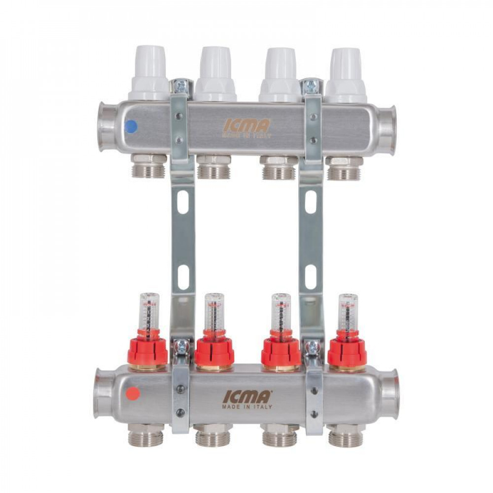 Колектор із витратомірами (нерж.) 3/4"х4 Icma № К073