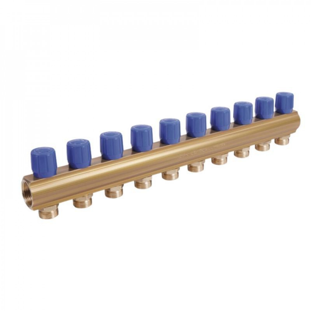 Колектор Icma з регулювальними вентилями 1" 11 виходів №1105 (Blue) призначений для розподілу потоку в системах гарячого та холодного водопостачання. Колектор з ручками управління синього кольору.