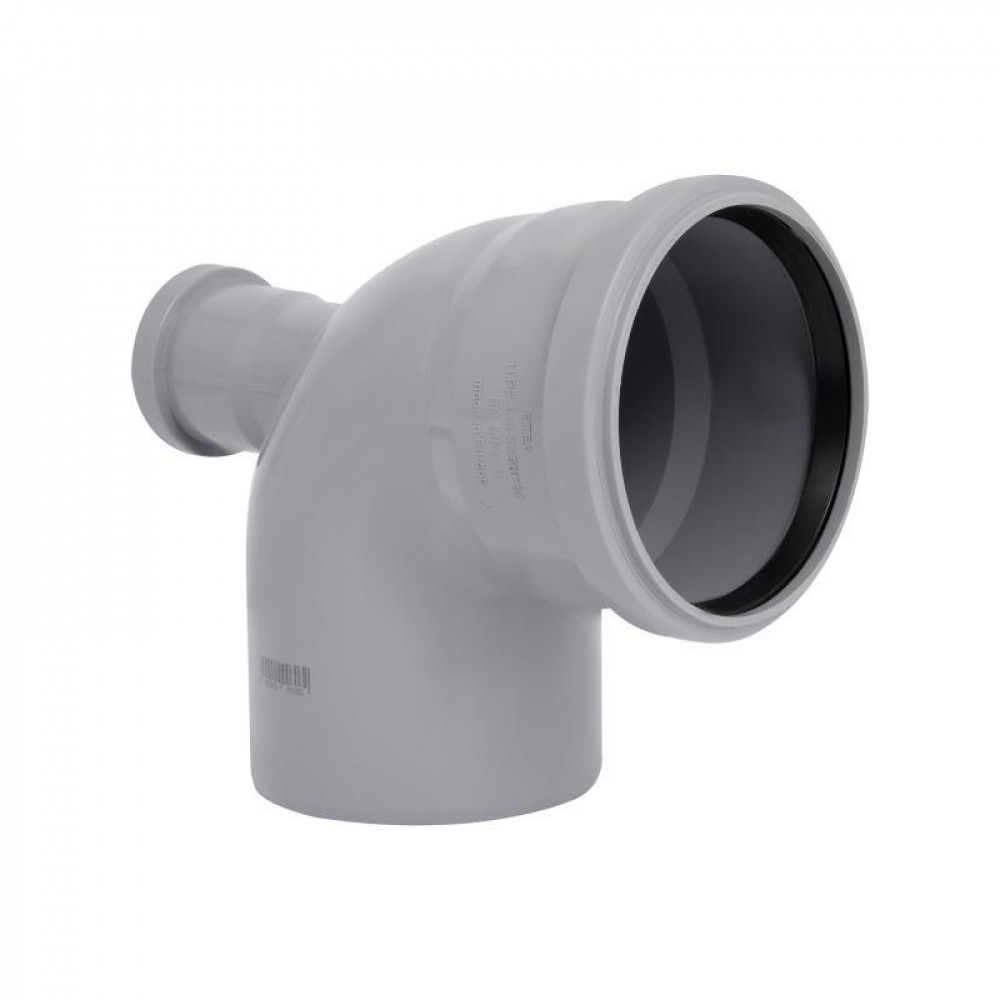 Відведення (коліно) TA Sewage з відведенням (50 мм), розмір підключення даного фітинга становить 110 мм у діаметрі, застосовується при монтажі в системах внутрішньої каналізації, для повороту каналізаційного трубопроводу під кутом 90°. Матеріал виробу – високоякісний поліпропілен. Має розтрубну конструкцію, що полегшує та спрощує монтаж каналізації.