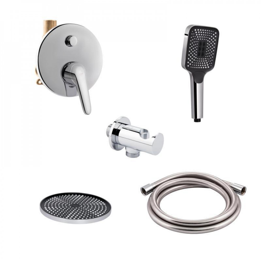 Змішувач (QTOS6212107ODC), лійка для ручного душу (QTRUC125CRM45954), лійка для верхнього душу (QTHLA107CRM45948), шланг (QTHADPVC200C), підключення (QTCRMBH030)