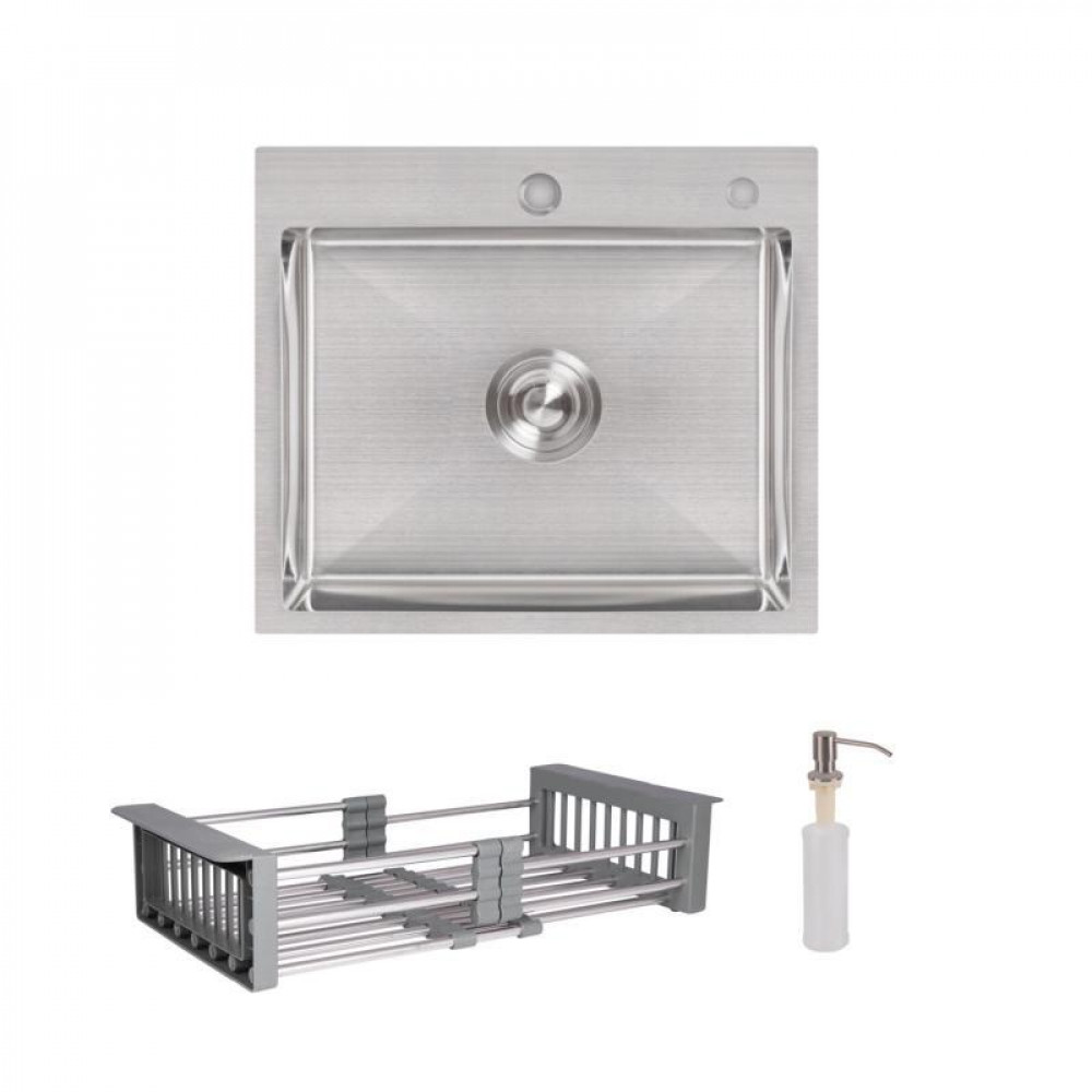 Нержавіюча сталь - мийка; латунь / пластик - дозатор; нержавіюча сталь / пластик - кошик