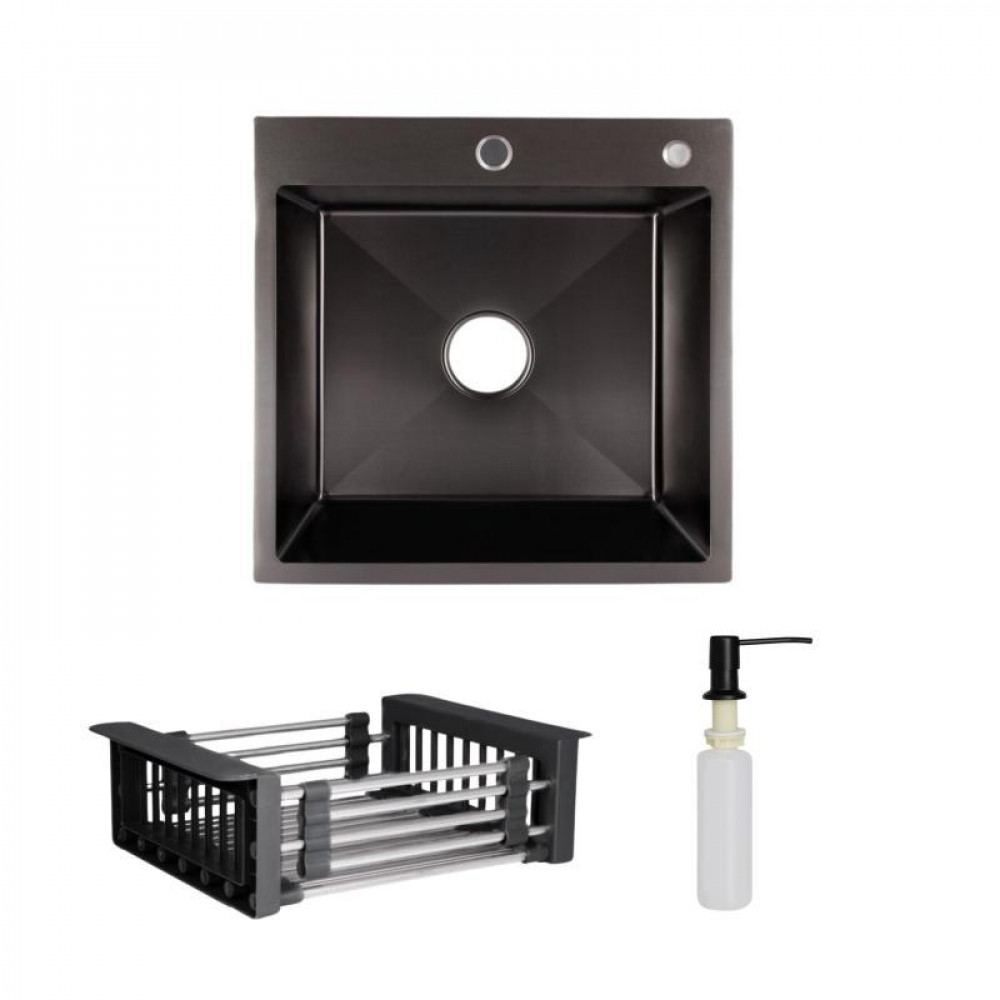 Комплект Lidz Handmade H5050B (BlackPVD) пропонує мийку з вишуканим чорним покриттям BlackPVD, доповнену дозатором і стильним кошиком Lidz K01B. Це сучасне рішення для стильних кухонь.