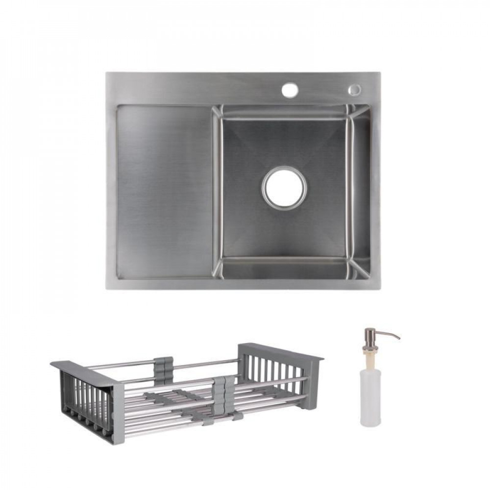 Комплект Lidz Handmade H6350L (Brushed) створений для шанувальників функціональності: інтегрована мийка з лівим крилом, дозатор для мийного засобу та кошик Lidz K01G - все, що потрібно для комфорту.