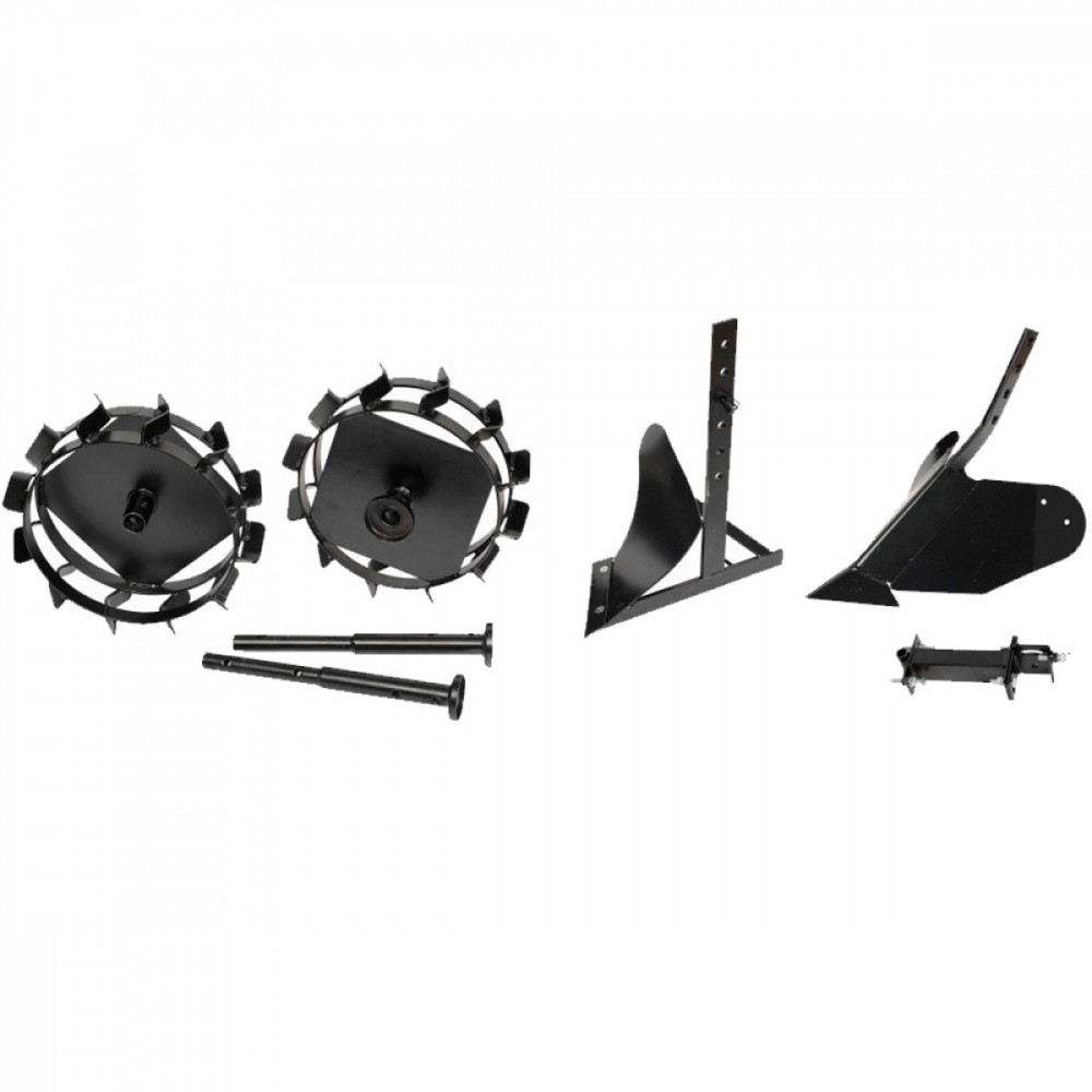 ОПИСКомплект поставки для моделей Т 700, Т 800, Т 850, Т 900.Колеса-грунтозацепи;Зчіпка;Плуг-окучник;Плуг-орник;Подовжувачі до грунтозацепів.