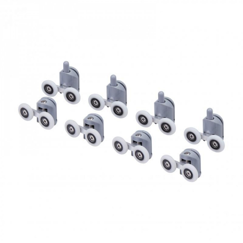 Комплект подвійних роликів Lidz Rolki SAT.DOUBLE.23.4 виконаний із якісних та надійних матеріалів. Підходить для душових кабін із товщиною скла 4 мм. У комплектацію входять 4 штуки нижніх та 4 штуки верхніх роликів.