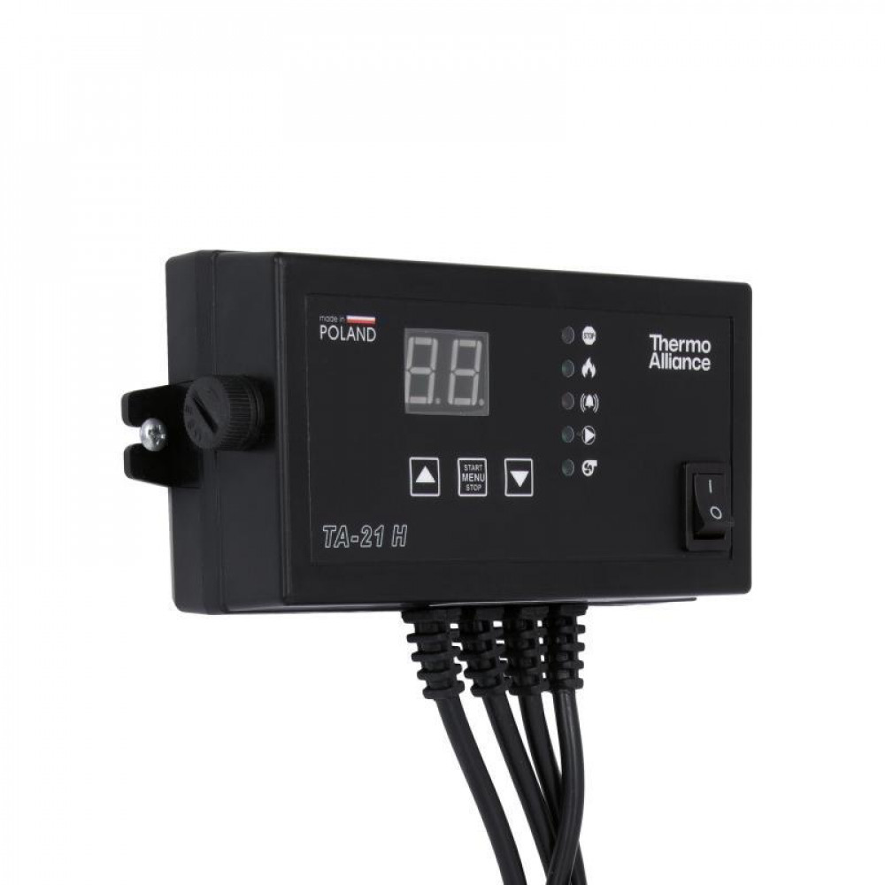 Контролер для котла TA21 Н Thermo Alliance призначений для автоматичного керування вентилятором і циркуляційним насосом системи опалення, забезпечуючи ефективну та безпечну роботу твердопаливного котла. Пристрій підтримує задану температуру води в системі, регулюючи оберти вентилятора, та вмикає насос центрального опалення при досягненні необхідної температури. Простий в налаштуванні та зручний у використанні, контролер допомагає знизити витрати палива та продовжити термін служби обладнання.