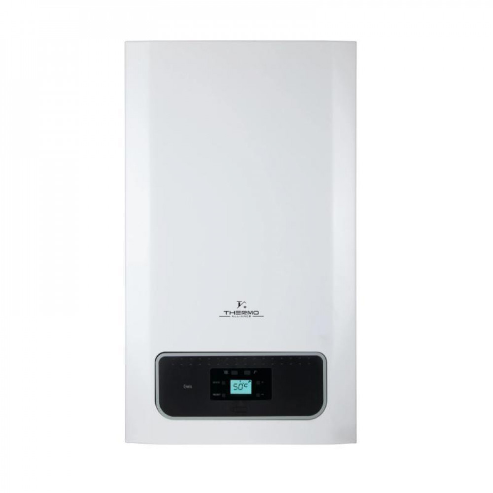 Двоконтурний конденсаційний котел ThermoAlliance Ewa призначений для опалення приватного будинку або квартири, має потужність 24 кВт на контур опалення та 28 кВт для приготування гарячої води. Має широкий діапазон модулювання від 35 до 24 кВт. Високий рівень ККД дозволить гарантувати максимальний обгорів навіть за мінімальної витрати газу. Завдяки вбудованій системі керування котел максимально економить витрати як опалення, так і приготування гарячої води. Підходить для встановлення в нову або вже існуючу систему опалення