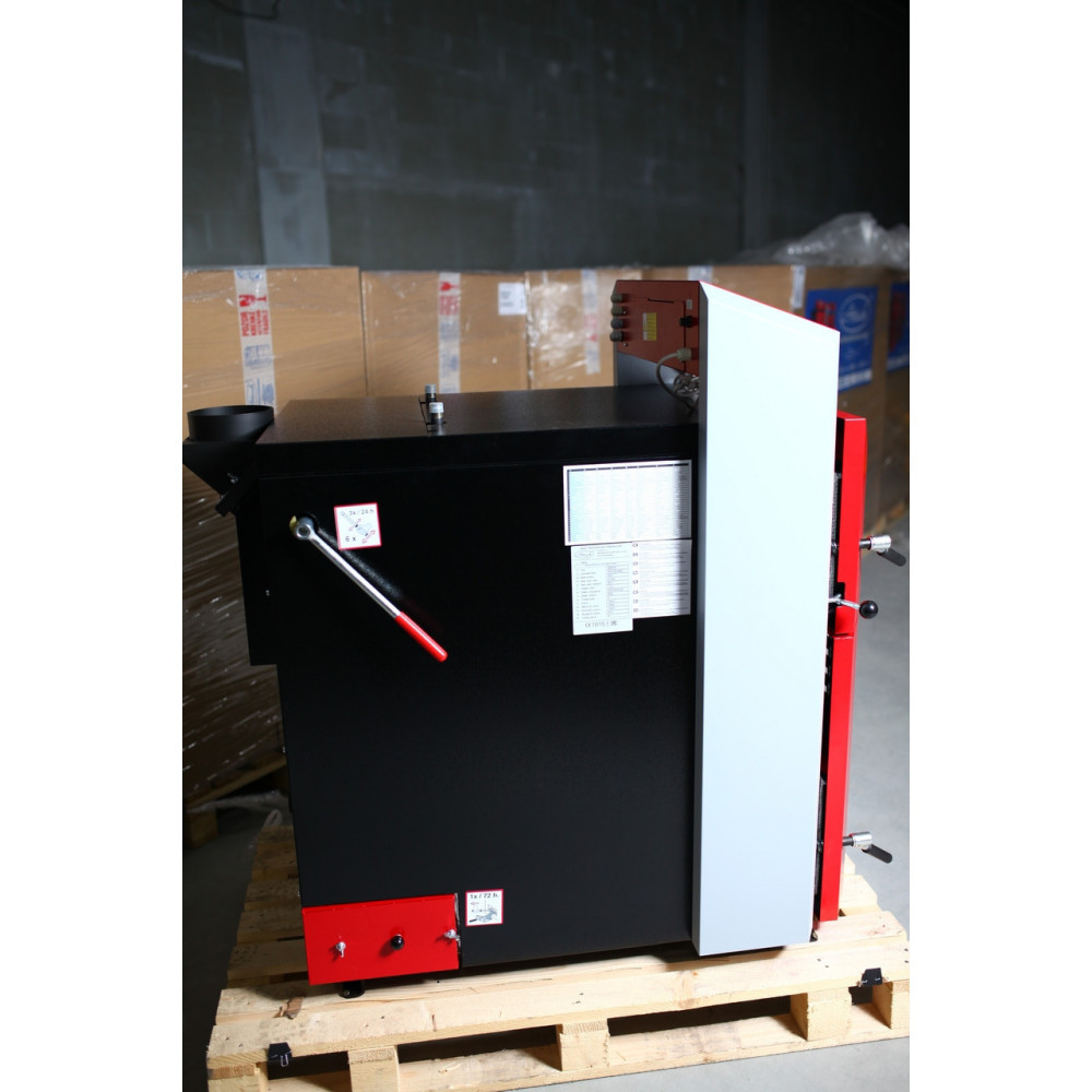 Твердопаливний піролізний котел словацького виробника ATTACK, з версією керування PROFI Котел модельного ряду ATTACK DPX призначений для опалення приміщення сухою деревиною, деревними брикетами Якщо у вас нова система опалення, ця модель буде для вас чудовим варіантом PROFI - керування котлом здійснюється електронним регулятором, з можливістю модуляції потужності 15-30кВт Корпус котла виготовлений з міцної котлової сталі, товщиною в 6 мм, що в значній мірі сприяє тривалому процесу опалення та високій ефективності роботи котлів Витяжний вентилятор для рівномірного і ефективного згорання Плоский трубчатий теплообмінник Чистка теплообмінника турбуляторами поворотом важеля Збільшений об’єм камери згорання - 158дм3, яка забезпечує довгий термін опалення на одне завантаження палива При повному завантаженні камери, тривалість горіння від 8 до 12 год Високий ККД згорання до 91,3% – низький розхід палива і низькі викиди Можливість використання великих дров – довжиною 650мм Обладнаний контуром охолодження для захисту від перегріву води в котлі Сучасний та інноваційний дизайн екологічного котла