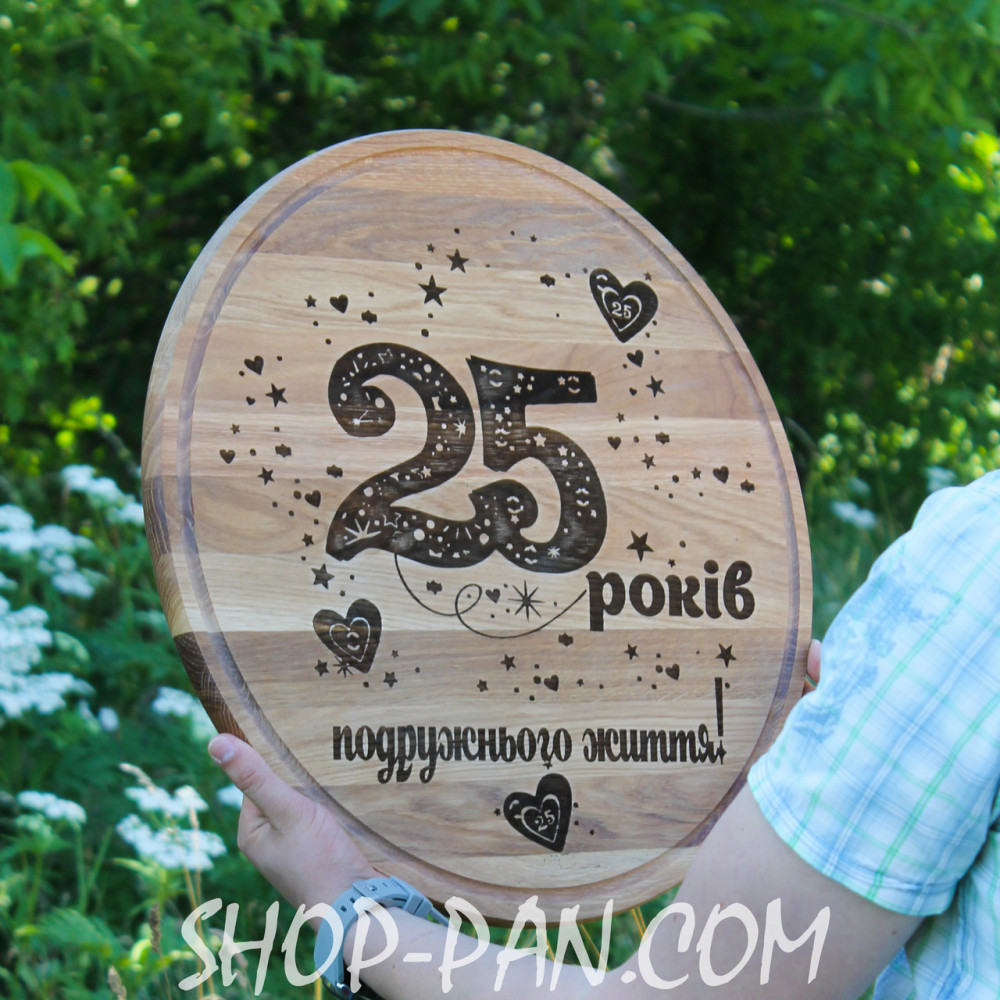 Кухонна дошка з гравіруванням 25 роківКухонна дошка з вашим гравіюванням. що може бути незвичайніше? Друзі! Тепер у нас є і таке, ми не будемо переставати додавати в наш асортимент нові види продукції, адже ми вас любимо і цінуємо, тому хочемо робити для вас більше крутих пропозицій. На дошку можна нанести будь-який текст привітання або малюнок. І ваша дошка буде вже точно в єдиному екземплярі! З вас креатив (картинка, текст, логотип) що найкраще характеризує майбутнього власника. З нас - реалізація! Підійде для всіх! Навіть для тих, хто не вміє готувати, тому що з такою дощечкою гріх не навчитися :) ???? Shop-Pan – ваш прямий постачальник туристичного спорядження та ексклюзивних аксесуарів для дому та відпочинку Пропонуємо широкий асортимент товарів для туризму, кемпінгу, риболовлі та пікніків – якісні вироби, перевірені часом та зібрані з любов'ю до деталей. ???? Широкий асортимент продукції У нашому каталозі представлені: ✅ Туристичні сковороди, турбо-пічки, котли, коптильні, ножі, рибальські сумки, ліхтарі та багато іншого ✅ Надійні товари для активного відпочинку, будинки та кухні – все для зручності та натхнення. ✅ Рішення для будь-якого стилю життя - від походів до домашнього затишку ✅ Збалансований вибір: еко-продукція з дерева, кухонні гравівальні дошки, фартухи з вашим принтом, монастирі, мангали, шампури, годинники та постери ✅ Аксесуари з можливістю персоналізації – зробіть свій подарунок унікальним ✅ Якість, естетика та турбота в кожному виробі – без прихованих недоліків та компромісів ???? Професійні консультації Менеджери проконсультують щодо вибору товарів. Працюємо: Пн-Пт 10:00 – 18:00, Сб 11:00 – 16:00. Зв'язок: Viber, Telegram, WhatsApp. ???? Швидка доставка по Україні ???? Замовлення, оформлені до 16:00, надсилаються того ж дня. ???? Доставка найпопулярнішими службами України ???? Бонуси та знижки за відгуки! ???? ???? Оцініть якість товару та ГАРАНТОВАНО отримайте знижку або безкоштовну доставку на замовлення! ???? Нам особливо цінні фото- та відеовідгуки. ???? Повідомте про свій відгук менеджеру в Telegram, WhatsApp або Viber (на вибір) - і гарантовано отримайте приємний бонус! ???? Знайдіть нас у Google - "Shop-Pan" і ознайомтеся зі _______________________________ Чому обирають нас? ???? ✅ Якість, якій можна довіряти Практичні товари для дому, подорожей та активного відпочинку ✅ Зважений підхід, чесність та контроль якості на кожному етапі виготовлення ???? Від ексклюзивних сувенірів до туристичного спорядження – все для ваших цілей та подарунків ✅ Замовлення 24/7 - просто та швидко! ???? Наш сайт працює 24/7 ???? Менеджер відповість у месенджерах у зручний для вас час. ✅ Швидка доставка по Україні ???? Працюємо по всій Україні! ???? Розрахуємо вартість та підберемо зручний спосіб оплати. Отримайте посилку швидко та без клопоту. _______________________________ Як замовити? Простий алгоритм покупки: ✔ Оформіть замовлення через кошик або у месенджерах ✔ Ми зв'яжемося з вами для уточнення деталей ✔ Відправимо після оплати або післяплатою ✔ Отримайте замовлення у найближчому відділенні ???? "Shop-Pan" - Магазин, якому довіряють тисячі клієнтів, які цінують якість та оригінальність! ????Ми цінуємо кожного клієнта та гарантуємо відмінний сервіс та продукцію. ???? Зробіть замовлення зараз!
