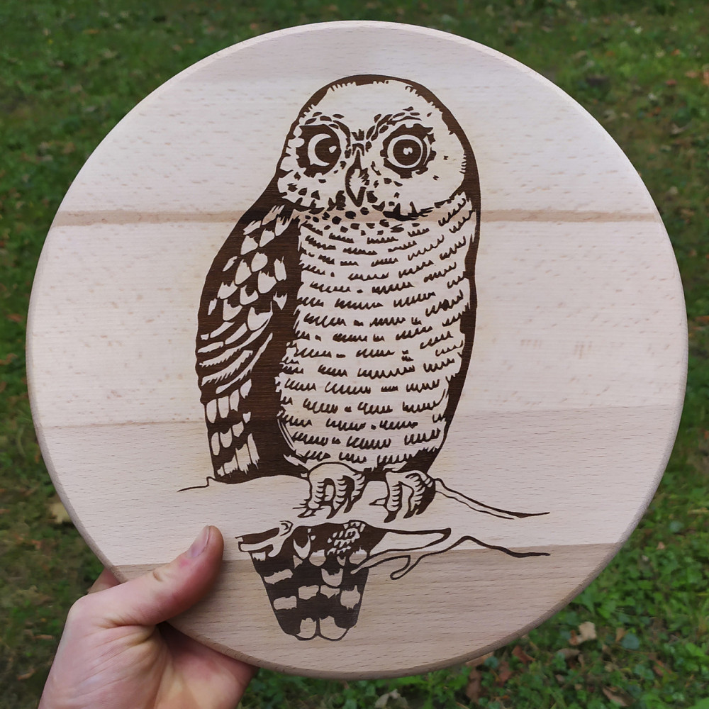 Кухонна дошка з гравіруванням "Сова"Кухонна дошка з вашим гравіюванням. що може бути незвичайніше? Друзі! Тепер у нас є і таке, ми не будемо переставати додавати в наш асортимент нові види продукції, адже ми вас любимо і цінуємо, тому хочемо робити для вас більше крутих пропозицій. На дошку можна нанести будь-який текст привітання або малюнок. І ваша дошка буде вже точно в єдиному екземплярі! З вас креатив (картинка, текст, логотип) що найкраще характеризує майбутнього власника. З нас - реалізація! Підійде для всіх! Навіть для тих, хто не вміє готувати, тому що з такою дощечкою гріх не навчитися :)