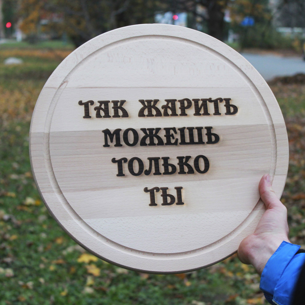 Кухонна дошка з гравіруванням Так смажити можеш тільки тиКухонна дошка з вашим гравіюванням. що може бути незвичайніше? Друзі! Тепер у нас є і таке, ми не будемо переставати додавати в наш асортимент нові види продукції, адже ми вас любимо і цінуємо, тому хочемо робити для вас більше крутих пропозицій. На дошку можна нанести будь-який текст привітання або малюнок. І ваша дошка буде вже точно в єдиному екземплярі! З вас креатив (картинка, текст, логотип) що найкраще характеризує майбутнього власника. З нас - реалізація! Підійде для всіх! Навіть для тих, хто не вміє готувати, тому що з такою дощечкою гріх не навчитися :)
